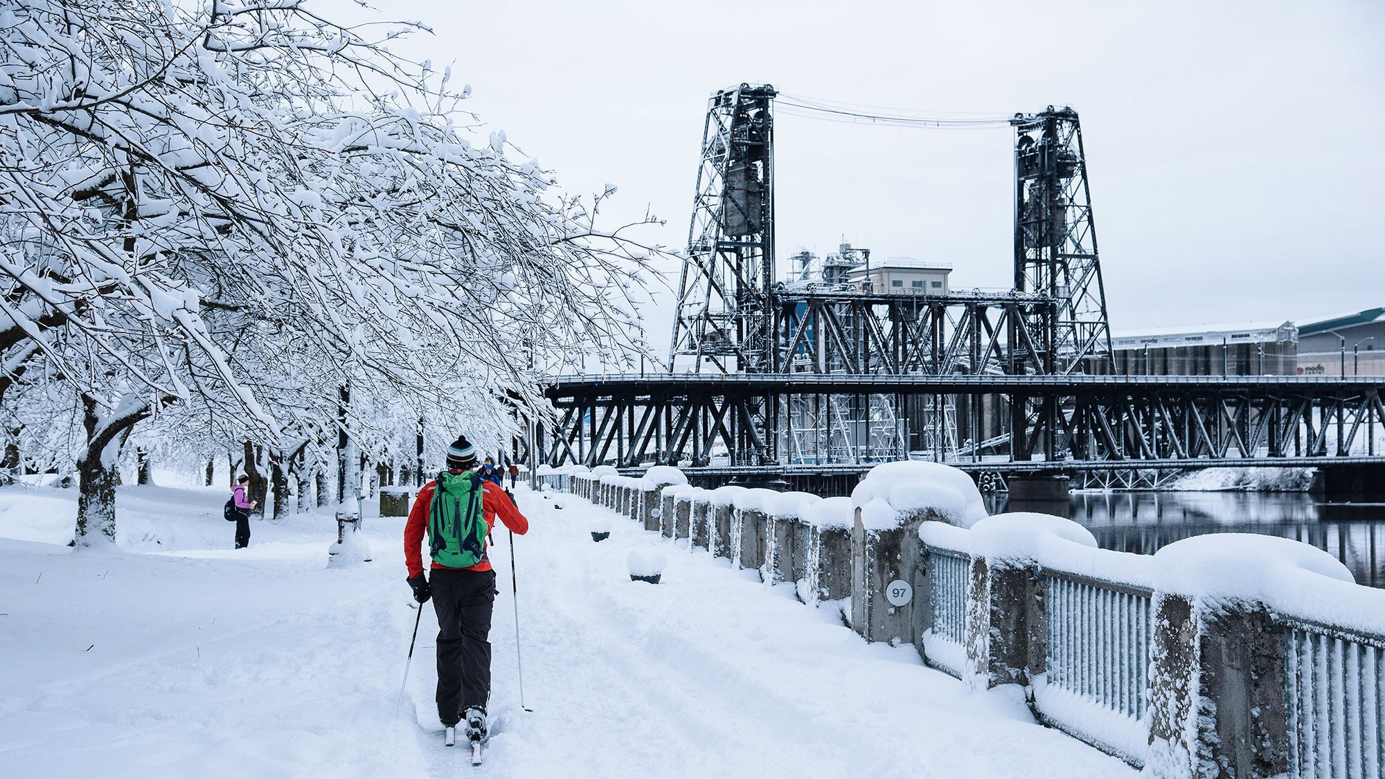 Bike paths are generally good spots for Nordic skiing, and the Springwater offers 40 miles of car-free terrain along the Willamette, past Oaks Bottom Wildlife Refuge and all the way out to Boring, Ore. For views of the Columbia, head to the Marine Drive multiuse path along the city's northern border. "The only thing you're really worried about is hitting bare tar," says Trombley. "If there's enough snow and the snow is heavy enough, usually you can glide a little bit. Just be cautious that if you bottom out, you're not going to be going so fast that you fall."