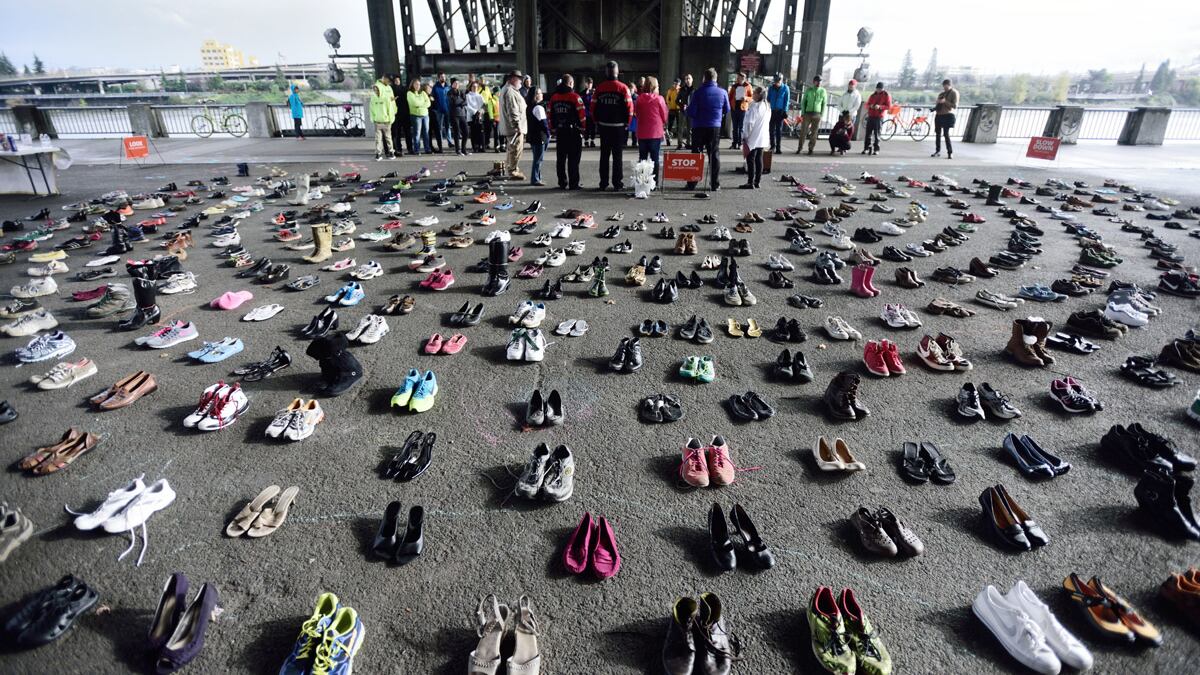 On Nov. 20, the activist group Families for Safe Streets placed 400 pairs of shoes in a semicircle near the Morrison Bridge—one pair for each person who has died on Oregon roads in 2016.