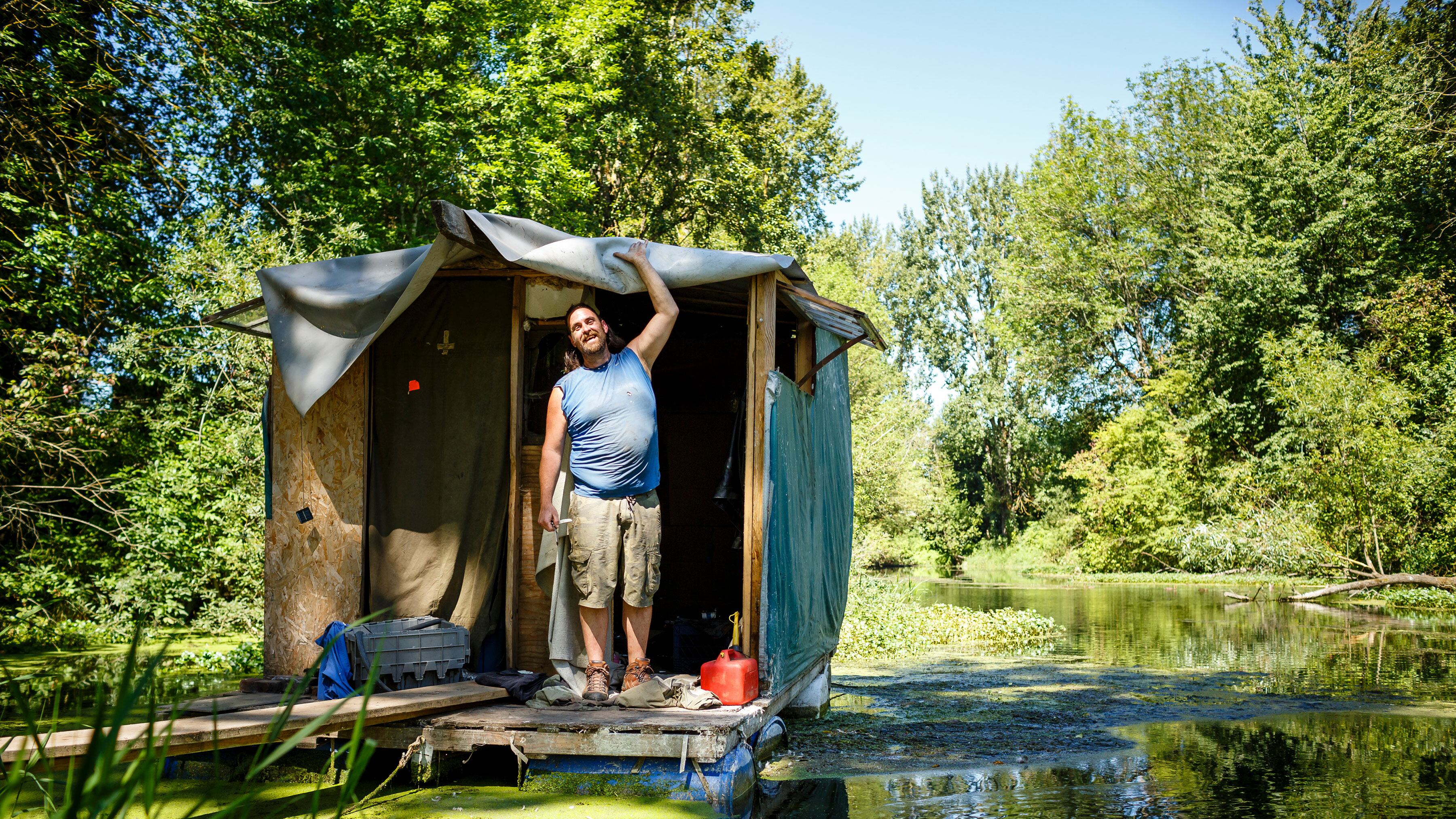 Last year, the homeless Portland man used a screwdriver, an ax and wrenches to build himself a tiny home on a raft in the Columbia Slough, complete with a wood stove, hand-crank washing machine and nearby heated shower. He figured those simple tools would help him build his next home.