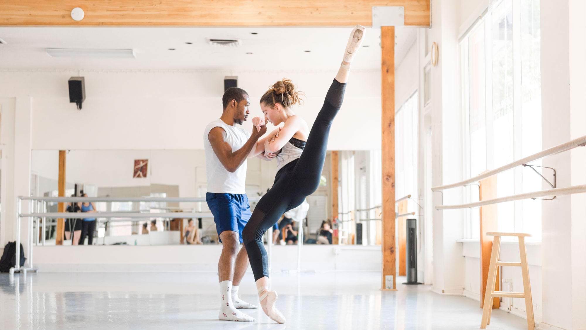 Plus, pointe ballet can't be performed on just any surface. You need something with more give than concrete, but hardwood floors don't work either. "It feels like death," says Neugebauer. "Once you put pointe shoes on, you just slide everywhere."