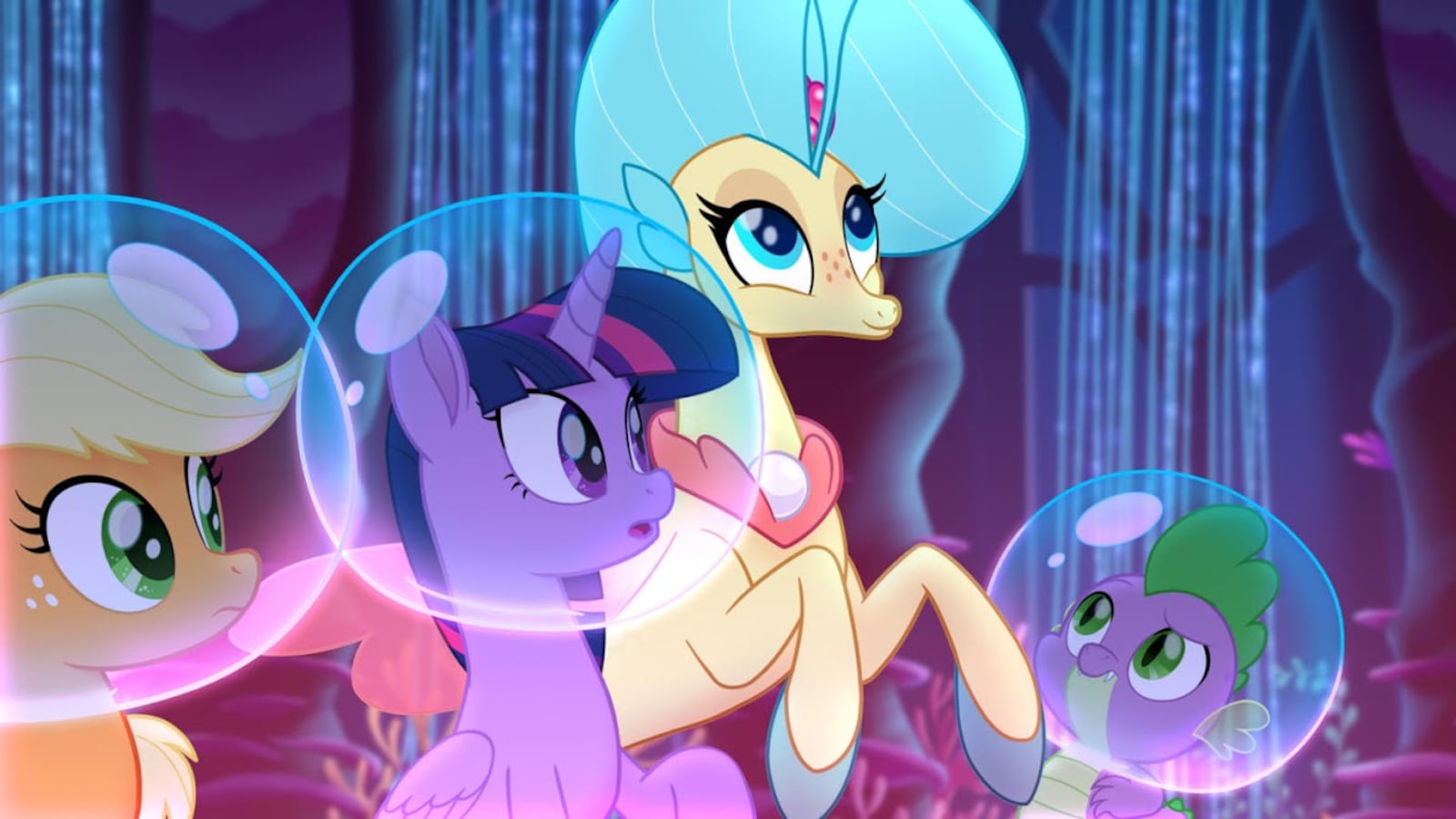 The ponies' signature visual style has evolved into something like Lisa Frank anime—a swirling pinkish, purply miasma of flattened expressiveness. The underlying mythology has expanded, too. A benevolent monarchy supports the twinkly adventures of Twilight Sparkle (Tara Strong) and other Mane Six principals.