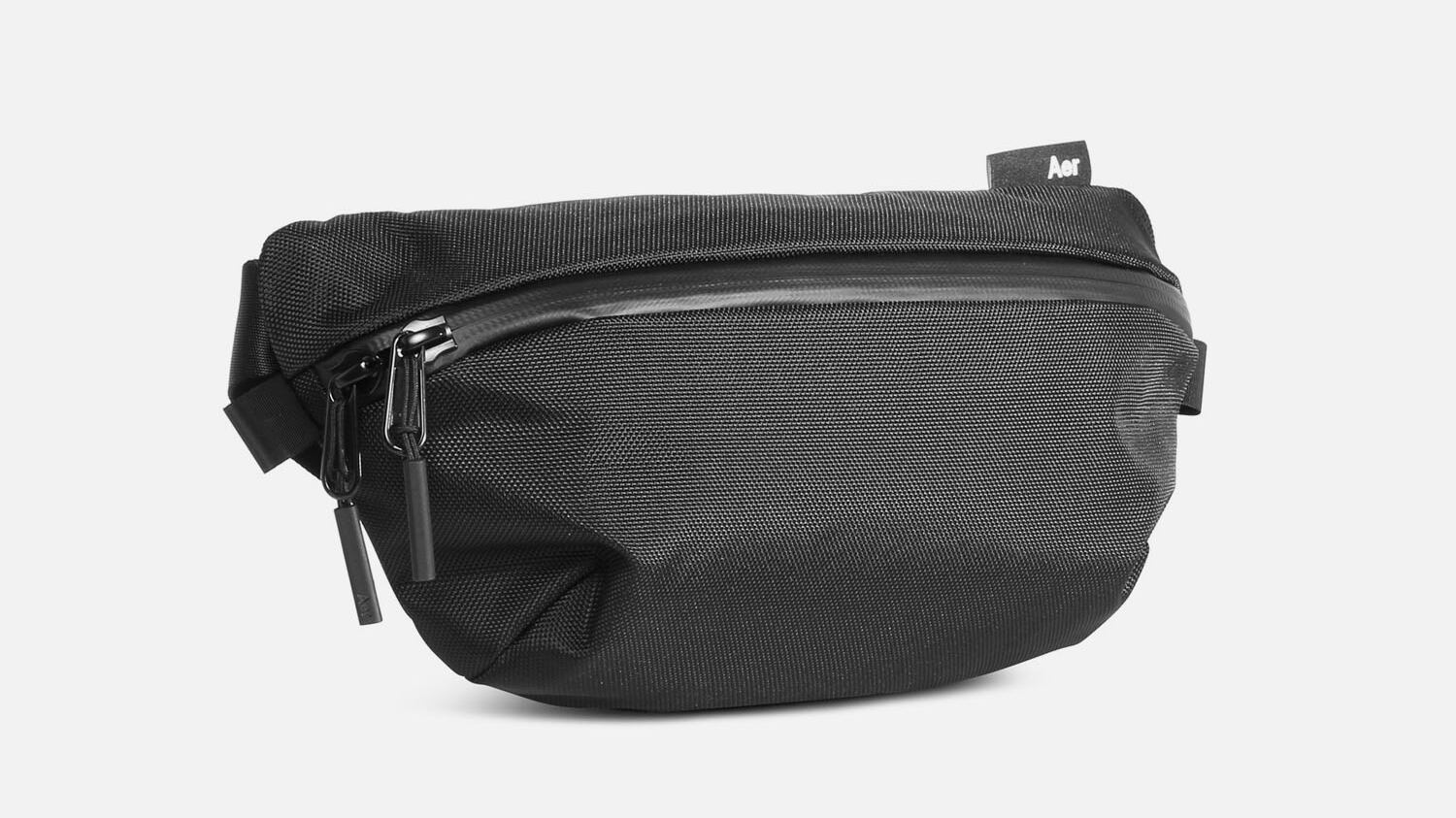 Made by San Francisco's Aer, I spent the next 10 minutes wearing the day bag while I shopped, barely noticing it (empty, it weighs 0.7 pounds) as I moved through the store. Like a fanny pack, a plastic buckle attached to a nylon strap keeps the bag fastened around the body. Unlike a fanny pack, the bag can be worn over the shoulder like a purse or diagonally across the back or chest.