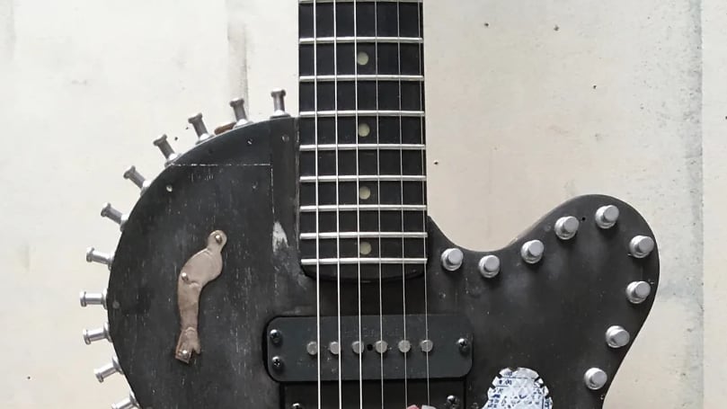What does he make? Guitars that should be mounted on the wall of an avant-garde art gallery.