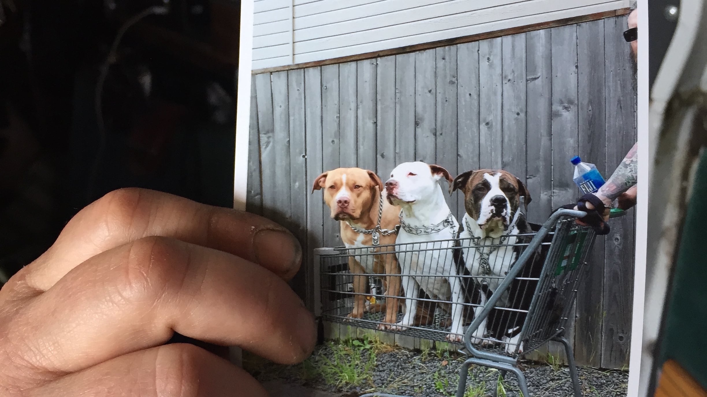 Leslie Preston's pit bull, Blue Dozer, was shot and killed by Portland police in September 2016. In early June, Blue Dozer's ashes sat in a box on the dashboard of a van under a bridge in the Hollywood neighborhood. A shrine for Blue Dozer was nearby.