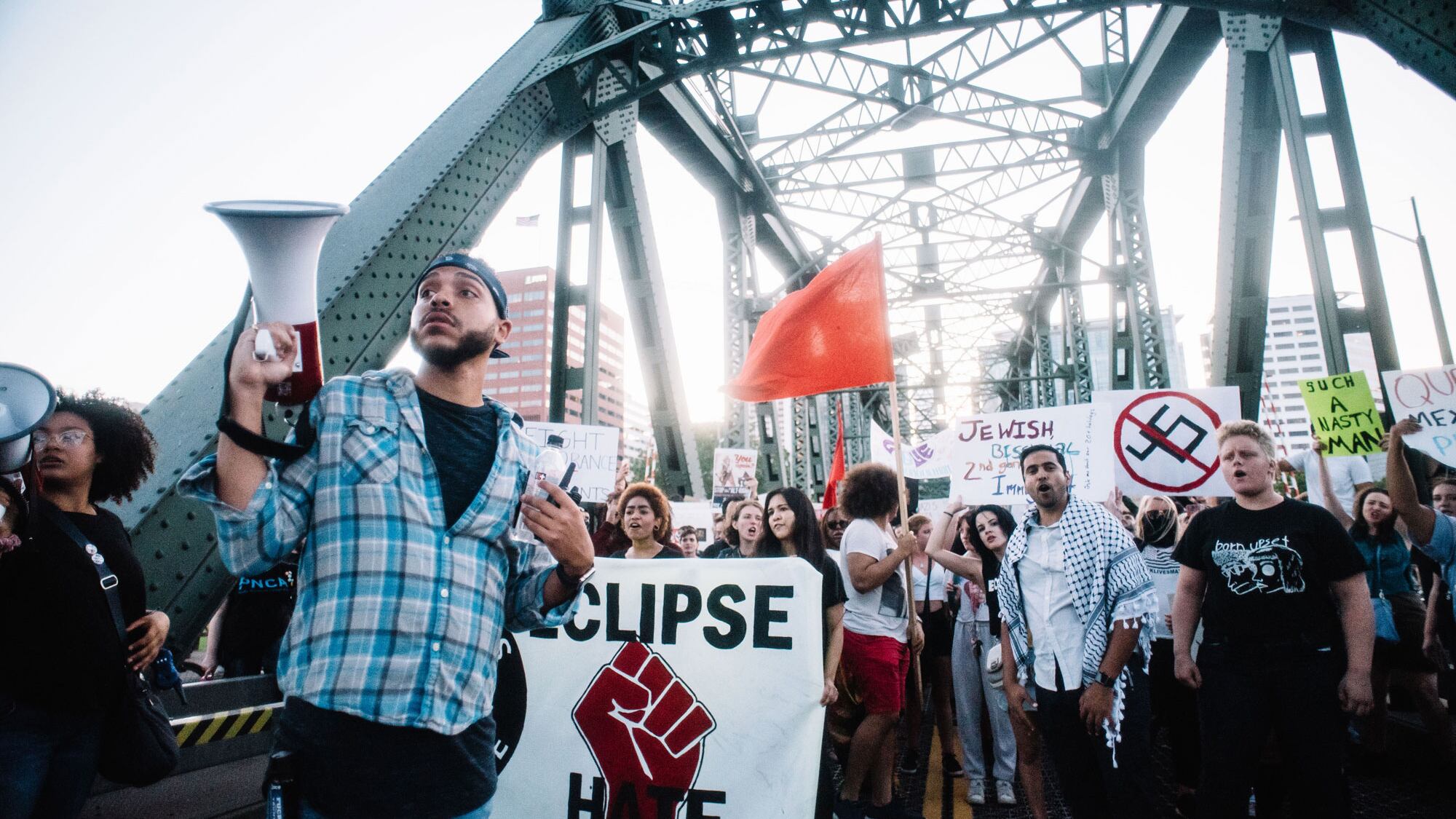 Greg McKelvey, a member of Portland's Resistance which organized the "eclipse hate" rally, said activists on the left needed to band together and stop fighting over whether people are too radical or not radical enough.
