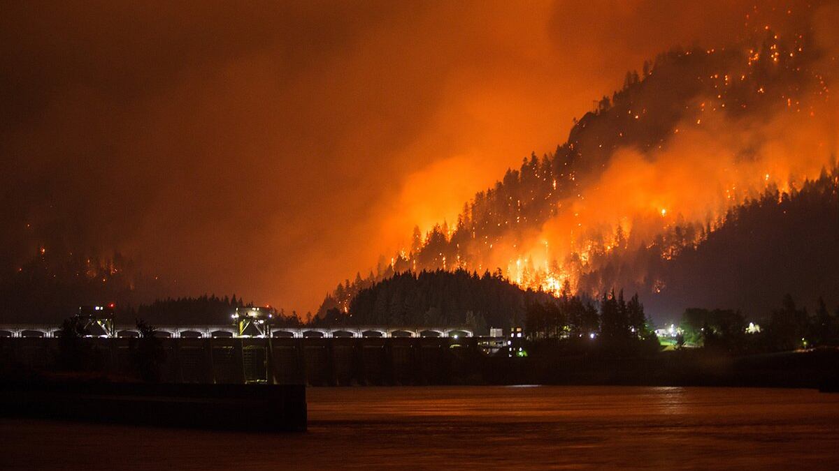 7:25 am Sunday, Sept. 3: Feeding on a bone-dry forest, the fire grows to 3,200 acres. Evacuation notices are issued for parts of the town of Cascade Locks. (3)
