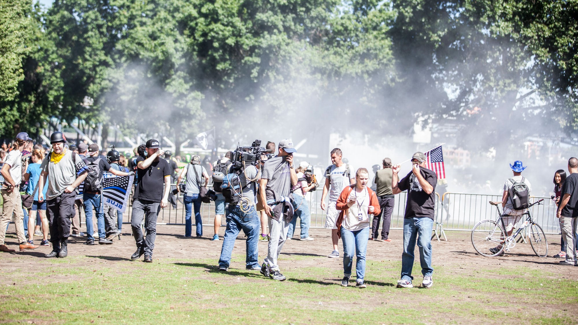 By 2 pm, the Patriot Prayer supporters left the protest area but a large crowd of counter-protesters remained.
