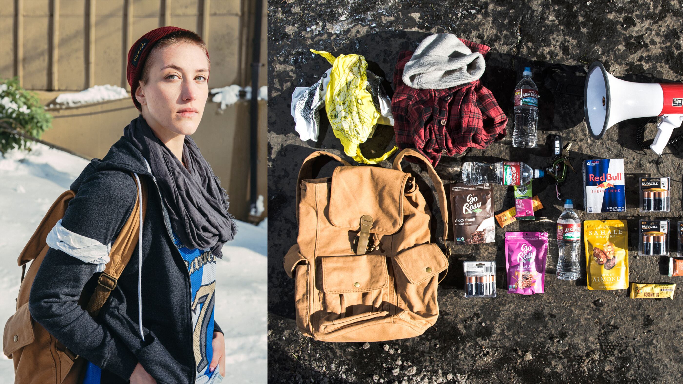 "I always have a backpack with me. It was actually given to me at Christmas by Greg [McKelvey] because my old backpack ripped at the last protest, so he got me a new protest backpack. I'm kind of a mom, so I like to load it up with every possible thing we might need and be as prepared as possible for myself, my friends and family, but also complete strangers that are marching with us."