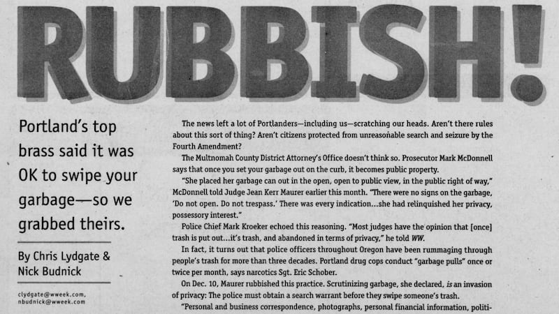 Police Chief Mark Kroeker echoed this reasoning. "Most judges have the opinion that [once] trash is put out...it's trash, and abandoned in terms of privacy,"he told WW.
