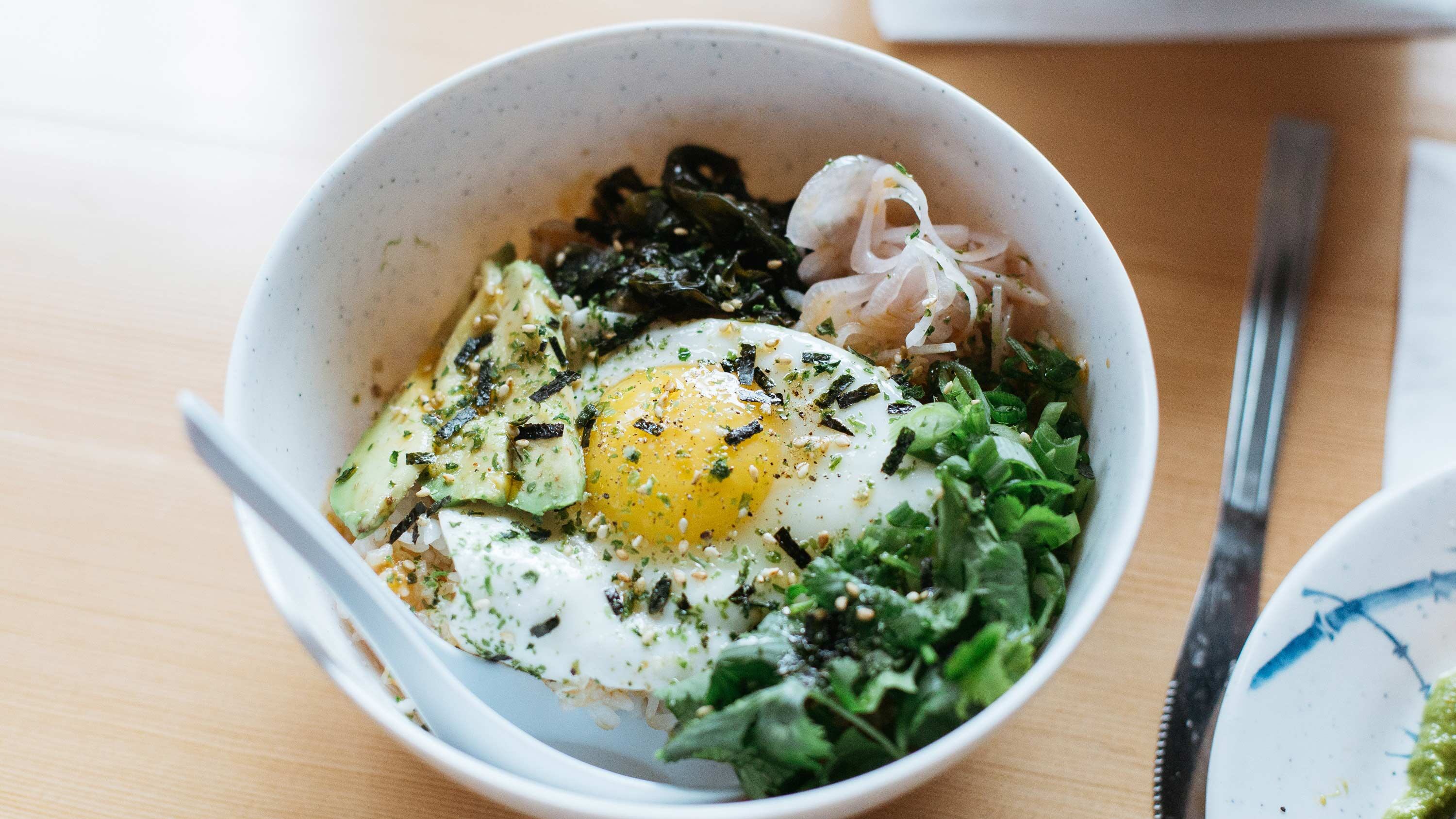 The rice bowl ($11, add chicken thighs or pork belly for $3) is fantastic, with a bright but earthy sauce of yuzu and miso, topped with a runny fried egg, furikake seasoning and avocado. The noodles in the ramen ($13) are a bit under-alkaline, but the chicken broth is a lively black-pepper and chili-oil number, softened up with a tender-poached egg.