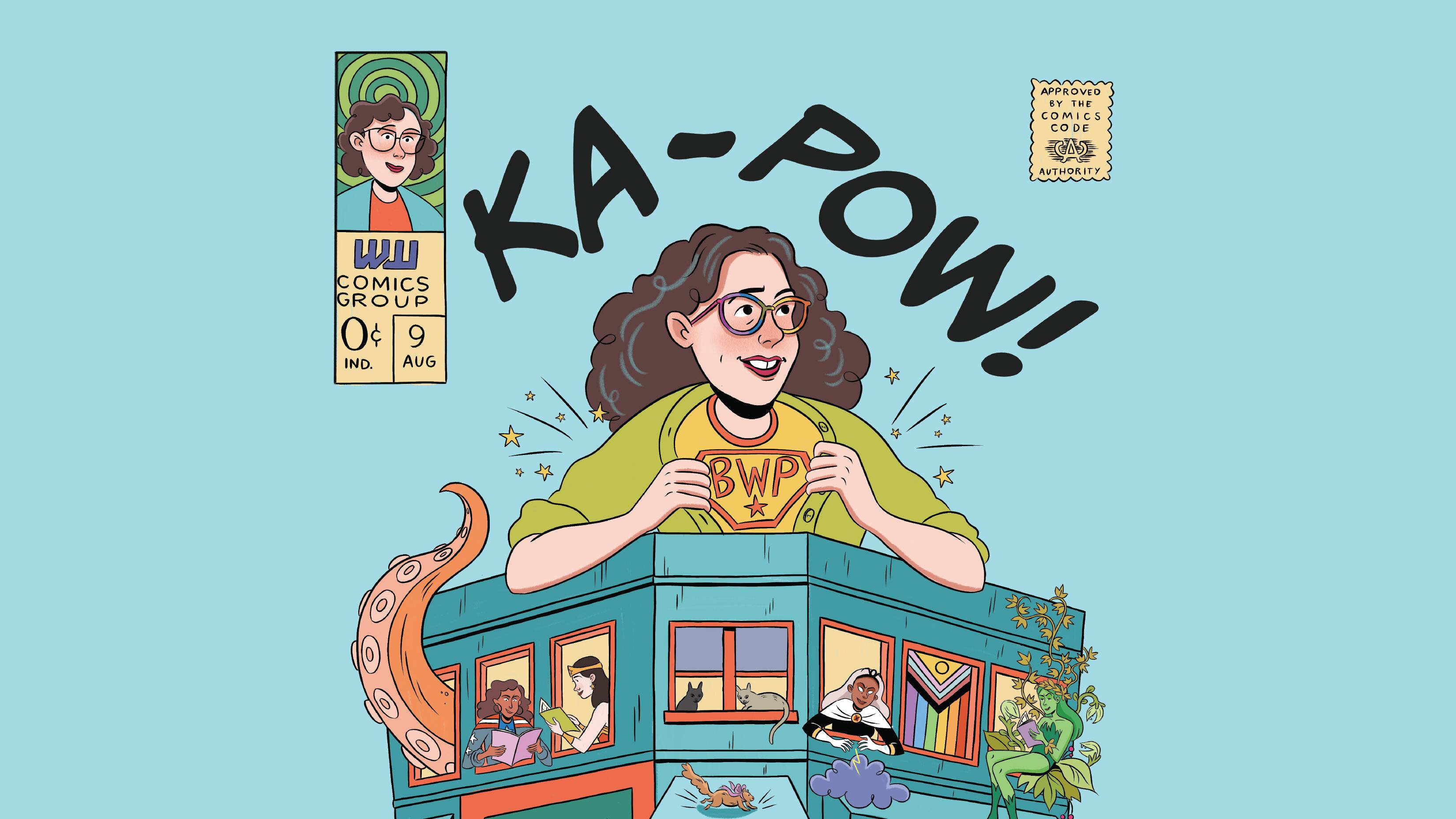 The story of Books With Pictures is too colorful to be confined to the printed word. That’s why our Comics Issue is, appropriately, a comic strip, based on Pryde’s adventures and illustrated by visual artist (and former Books With Pictures staffer) Seaerra Miller.