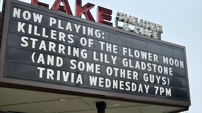 The theater’s latest bit of marquee mischief concocted by the theater’s bar manager, David Thompson? Billing Martin Scorsese’s Killers of the Flower Moon as a film “Starring Lily Gladstone (And Some Other Guys).”