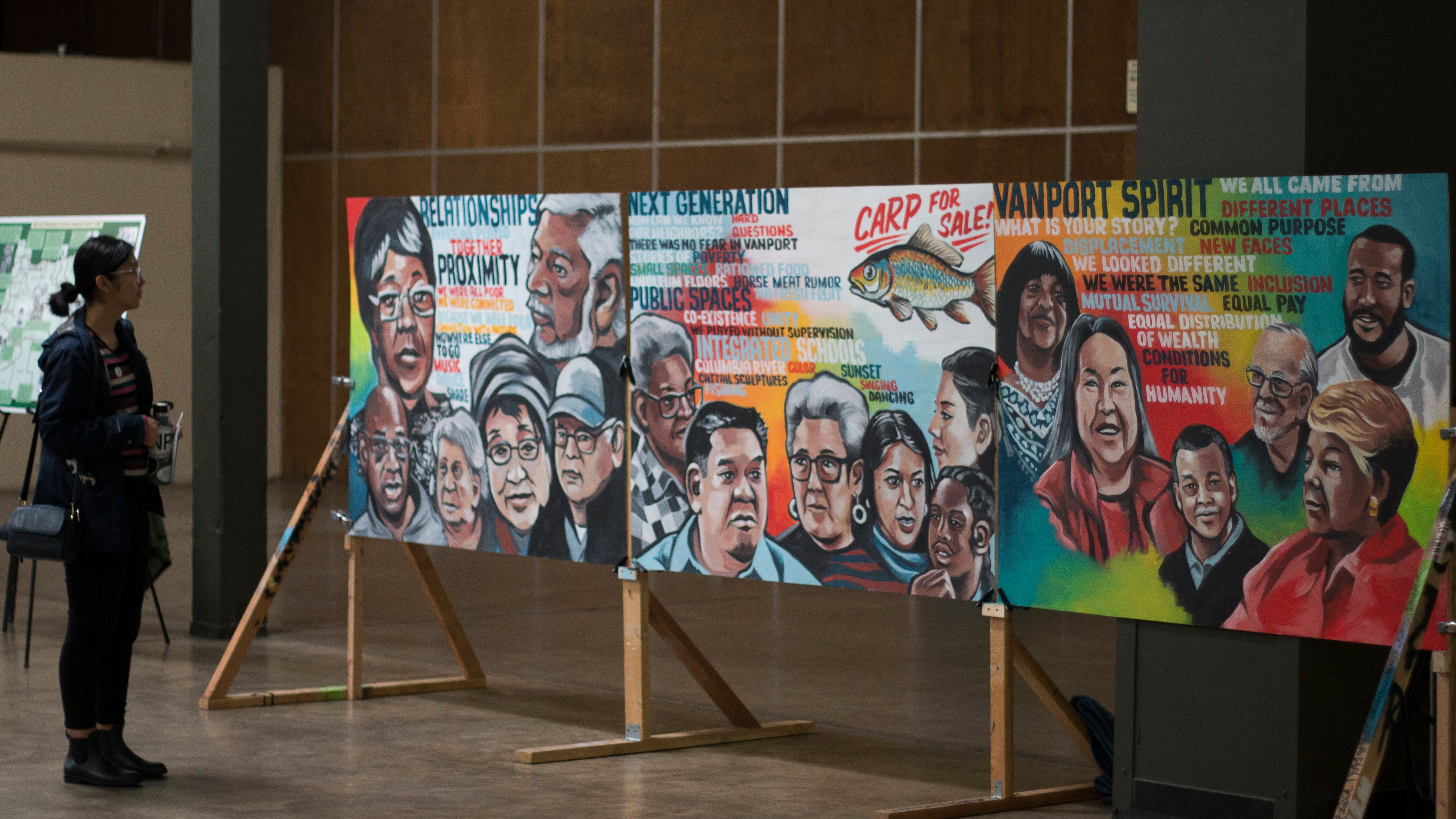 Vanport Mosaic commemorates the temporary housing project built in 1942 for shipyard workers and their families that was destroyed in a Memorial Day flood six years later. The 1948 flood killed at least 15 and displaced 18,700 residents. Vanport Mosaic is a “memory activism platform,” according to its co-founder Laura Lo Forti.