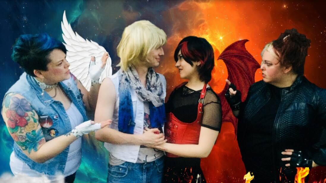 The writing by Grey (who not only stars in but also directs the show) has a playful meta quality. Romeo, for example, mentions at one point cutting lines because Act I is running long. God (Owen Hofmann-Smith) and Lucifer ("Lucy" as God playfully calls her, played by Heidi Davis) are two more comedic standouts. Hofmann-Smith plays God as the ultimate laconic dad joker. "Me damn it!" he exclaims whenever something doesn't go his way.