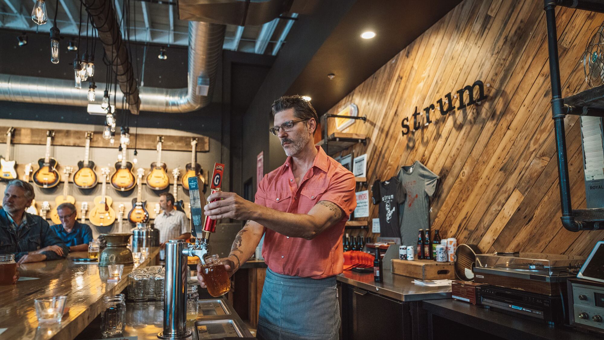 In this case, it's a spread of vintage guitars and amps, like a $2,300 '76 Fender Telecaster Custom or a $2,500 1995 Matchless Chieftain, that are certain to make the Jack Whites of the world giddy. It's a precariously pricey accompaniment to the four taps that dispense regional hits like Pfriem Strong Blonde and North Jetty Raspberry Hefe ($6).