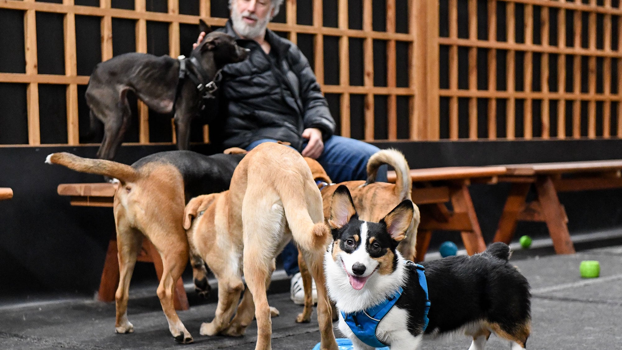 The "park" is really just a 60-by-40-foot pen adjacent to the bar, with a patch of synthetic turf outside for the warmer months, and it operates more like a bougie day care center: Admission costs $6 for one-time entry or $25 a month for a subscription, and newcomers must provide proof of up-to-date vaccinations.