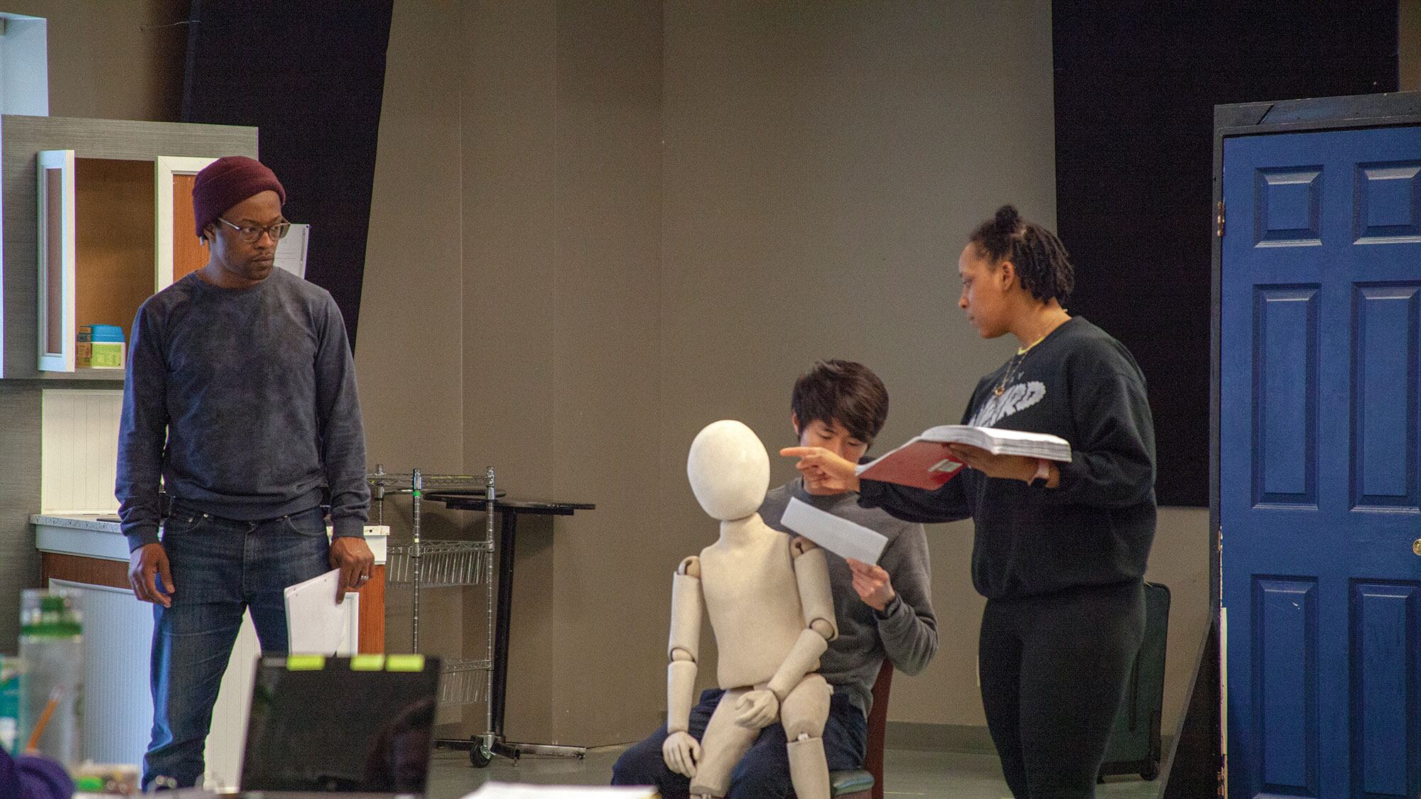 While Jung is building a modern, ethereal concept of family in her script, director Dámaso Rodríguez is hard at work bringing the equally unconventional characters to life. While traditional puppeteers are invisible onstage, Larkin will be as much a part of Wolf's character as the puppet. One of the characters is a boxer, and real scenes with actors boxing had to be choreographed.