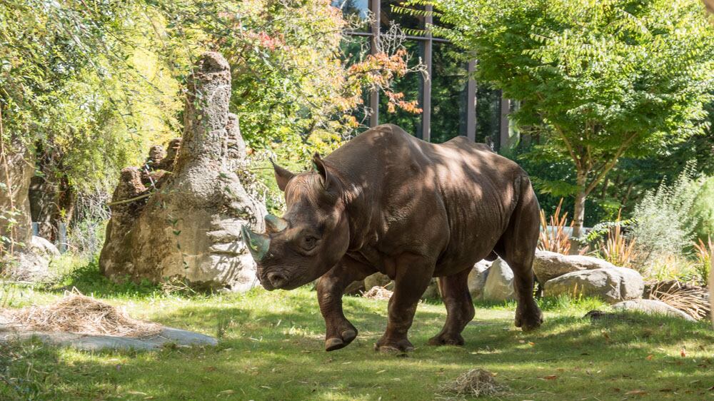 King, a black rhinoceros from Chicago’s Brookfield Zoo, is now out and about in the outdoor quarters of his habitat, which means guests can probably catch sight of the transplant. The 8-year-old actually arrived in Portland on Sept. 10.
