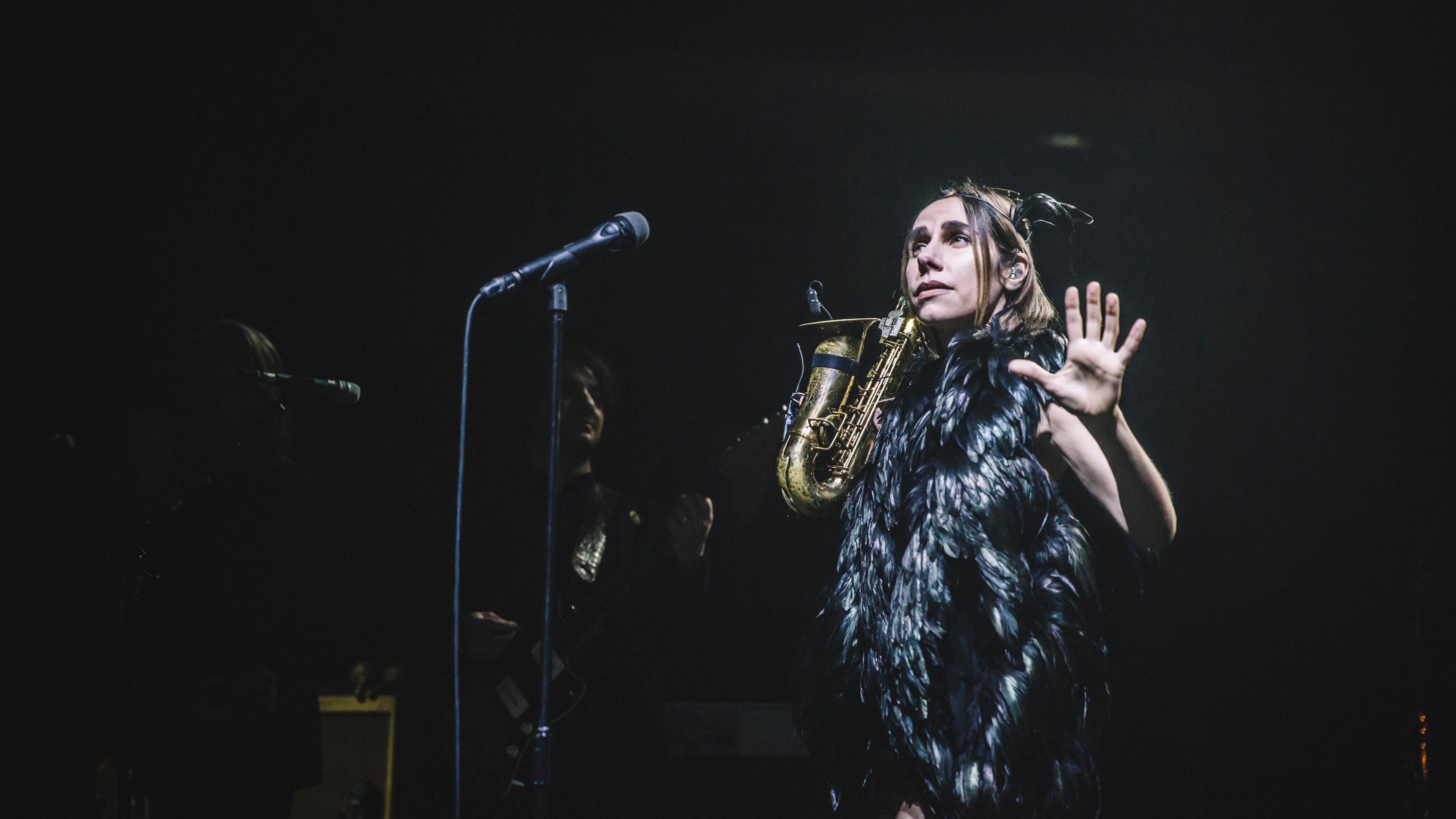 It was dramatic from the onset. Entering as a procession of brass and percussion, her band of alternately bald and greying dudes—including longtime collaborator John Parish, Mick Harvey of the Bad Seeds (no relation) and Queens of the Stone Age sideman Alain Johannes—arranged themselves onstage one by one, with Harvey, wearing a feathered vest and brandishing a saxophone, initially taking position alongside the other horn players. When she finally stepped up to the mic, she moved deliberately, illustrating the lyrics by slicing the air with her hands or grabbing at invisible orbs. Other than thanking the audience and introducing the band, she didn't speak. As a "rock show," it was controlled, perhaps, to a fault. But as theater, it was mesmerizing; you've never heard a less-chatty Portland crowd.