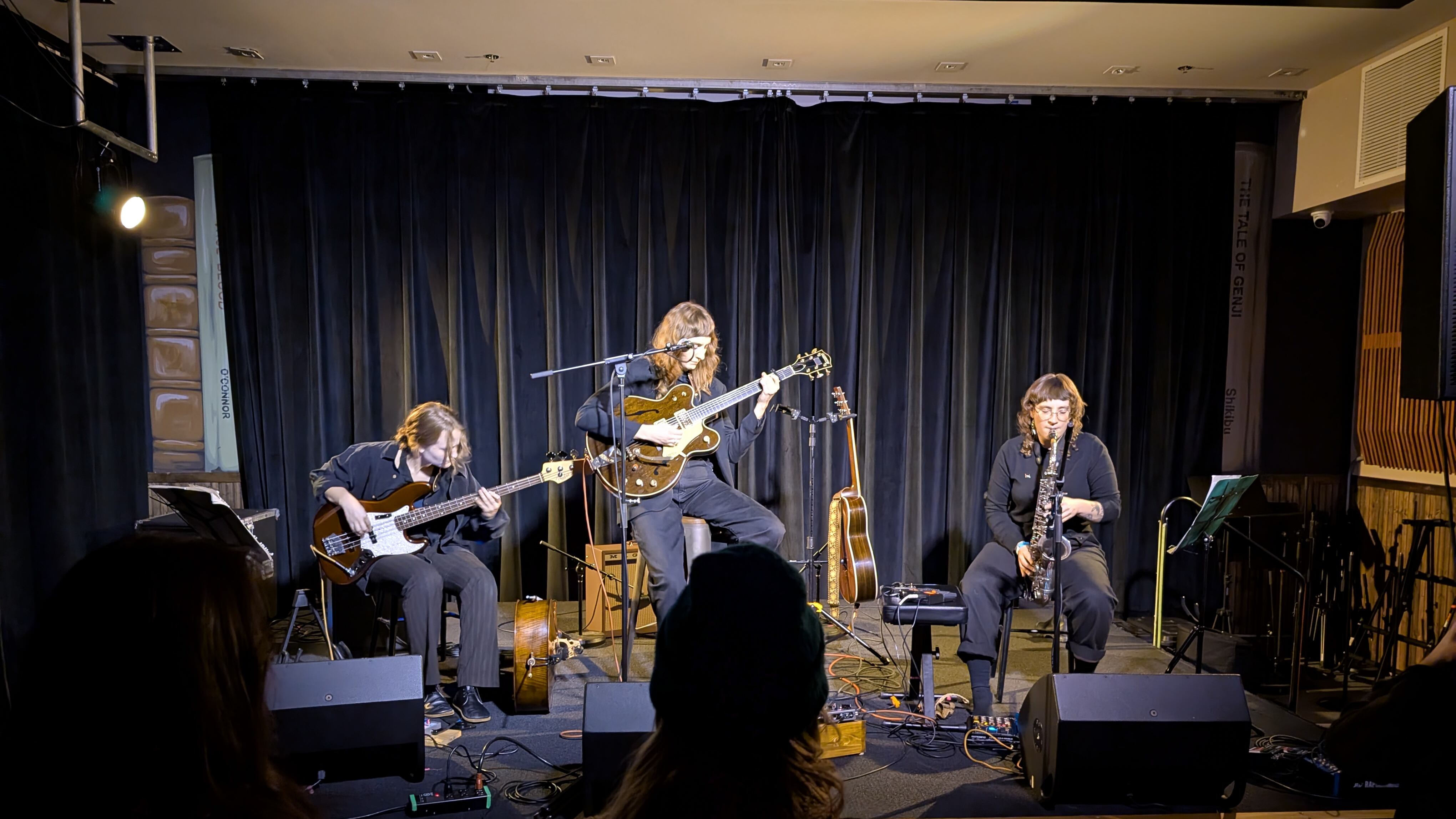 At her appearance at Show Bar this past Tuesday, she was joined by only two other musicians: saxophonist Sarah Clausen and Meredith Nesbitt, who switched between electric bass and cello. Stripped down as it was, the already expansive music was pulled apart even more to reveal the inner workings of each arrangement.