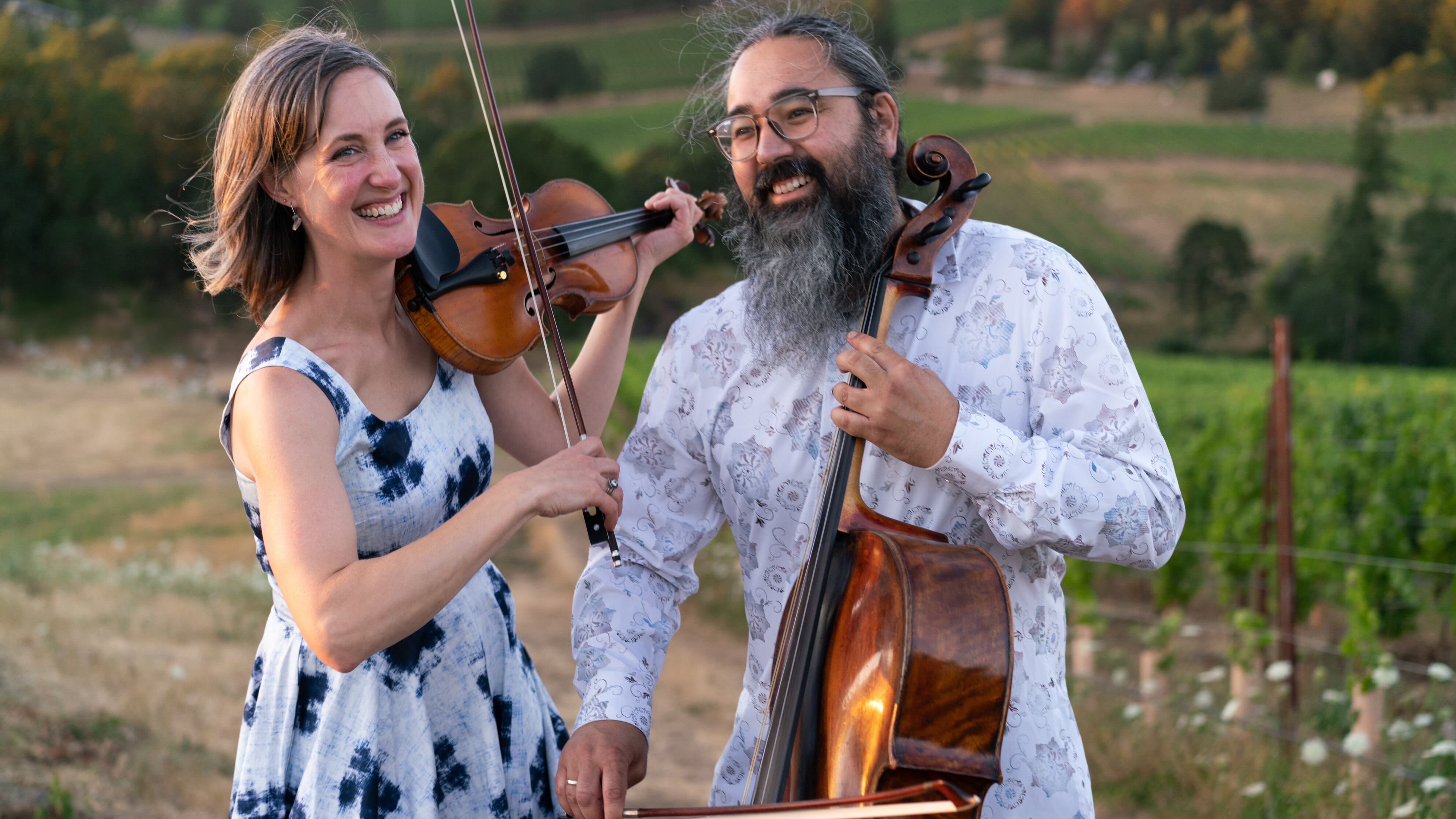 Willamette Valley Chamber Music Festival consists of one traveling group, with Callahan and Eguchi playing violin and cello respectively. “We all come together for the festival each summer and spend a lot of time together over these weeks playing music. We have a special bond over the nine years, so it’s been really wonderful,” Callahan says.