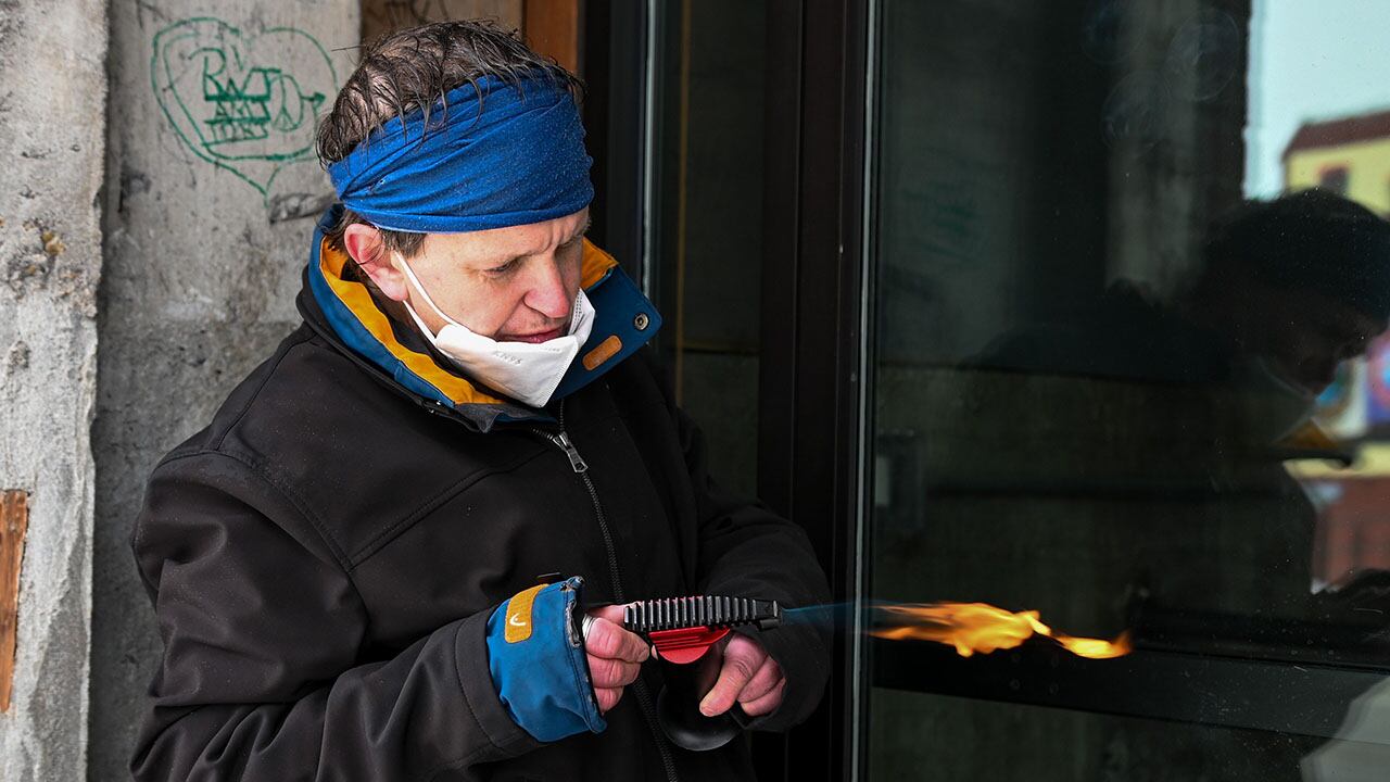 The man with the blowtorch motioned to the two tiny tents on the sidewalk, under several layers of tarps, snow and ice. "I don't need no shelter," he said. "This is shelter right here."