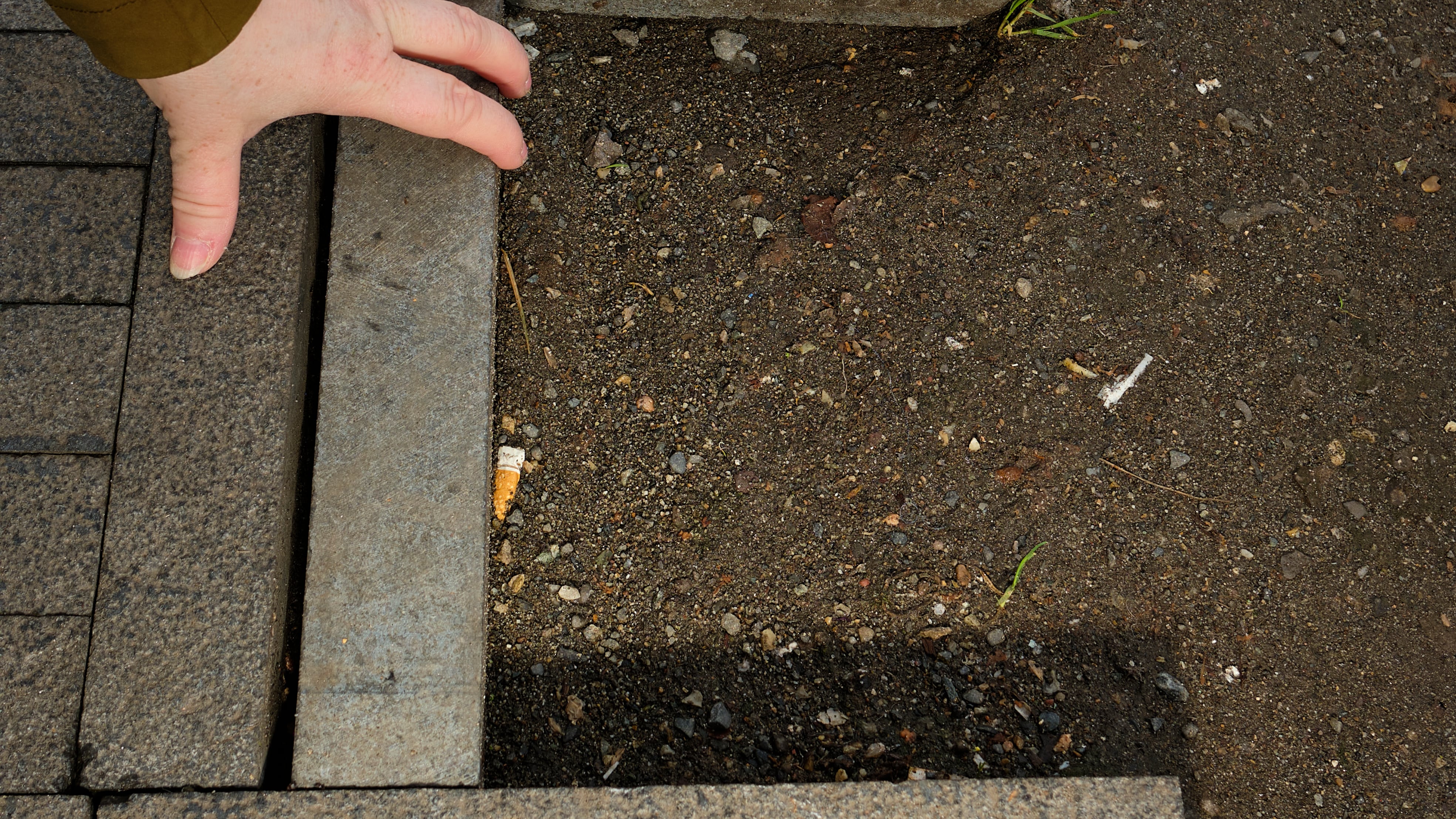 It isn’t hard to find the lost pavers. They’re scattered around nearby homeless encampments, often serving as makeshift tent stakes.