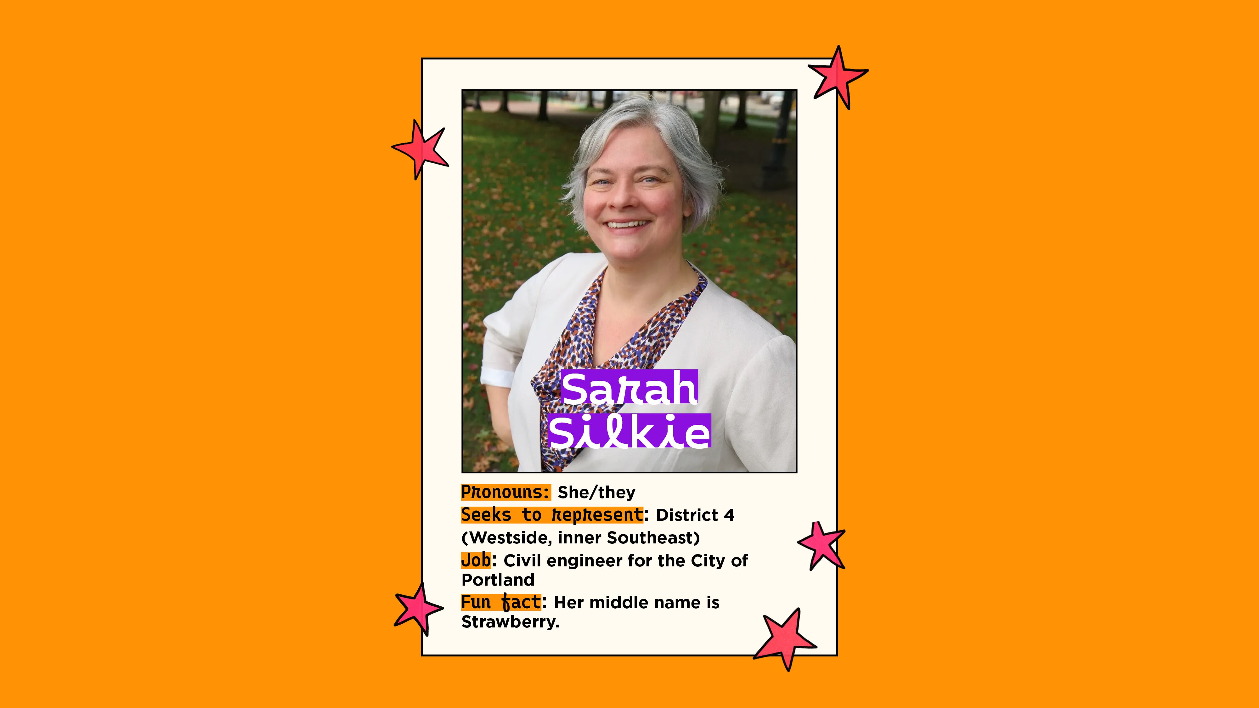 Silkie has received $40,000 in matched funds through the Small Donor Elections program. In total, her campaign has raised almost $57,000. She’s been endorsed by LiUNA 483, Portland Association of Teachers, Basic Rights PAC, and the Street Trust Action Fund.