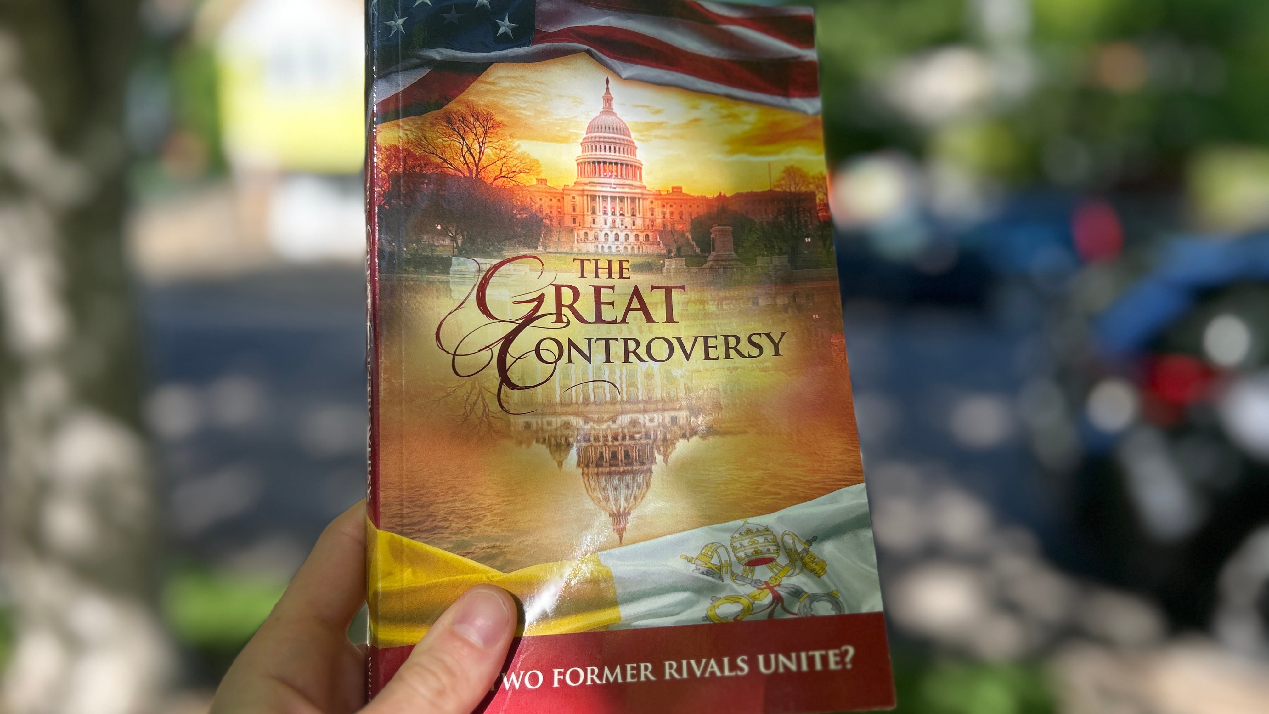 The 473-page paperback book authored by the founder of the Seventh-day Adventist Church promises to tell the “untold story behind the Vatican’s rising influence in America.” It was written in 1858, and is now being mass distributed by a 34-year-old family-run nonprofit in Coldwater, Mich., that has made a habit of blanketing cities across the United States with evangelizing texts.