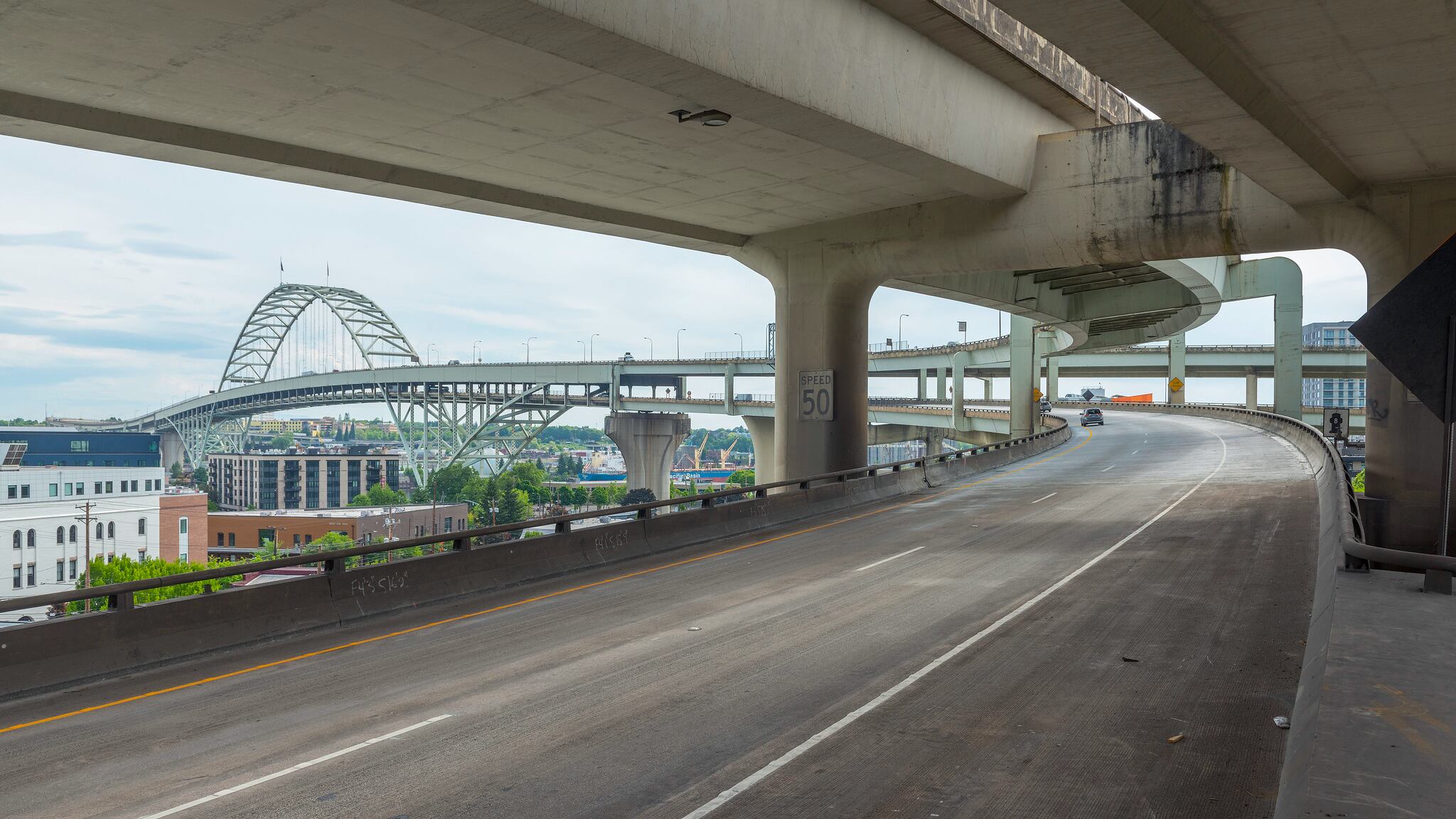 When the bridge opened in 1973, it didn’t even have flags—they were added in 1976 in honor of the U.S. Bicentennial. (They were supposed to be temporary, but public opinion intervened.) Unfortunately, parts for a 1976 model year flagpole are tough to find nowadays, and ODOT had to have them fabricated from scratch. This is taking a while, though they have ordered a few spares in case this happens again.