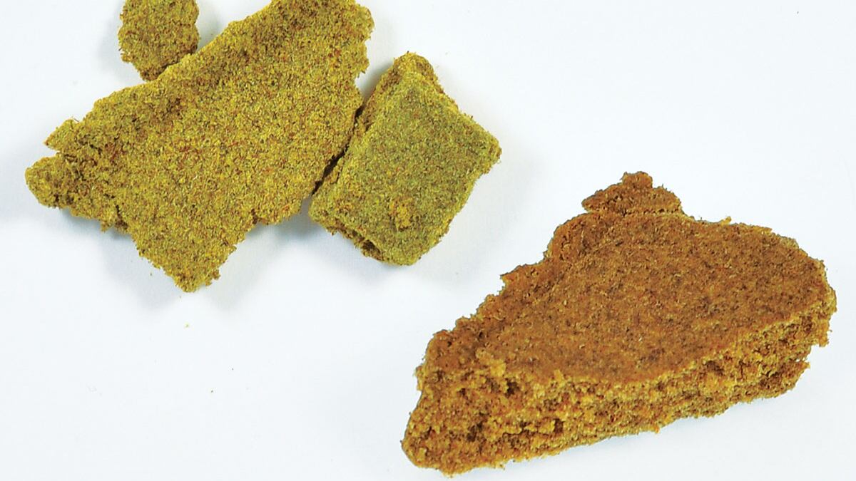 Pressed hash is different from tarry, Moroccan hash, and different still from rock-hard bubble hash that longtime Oregonian weed consumers might be familiar with. There's no need to apply heat beforehand to render it usable—a prospective smoker simply takes a piece, applies a little pressure with the fingers and watches as it crumbles into smaller, more manageable pieces that are then added to a joint prior to rolling or as a cap for a bowl of green, or smoked by itself—perhaps with a screen or inside of a vaping device.