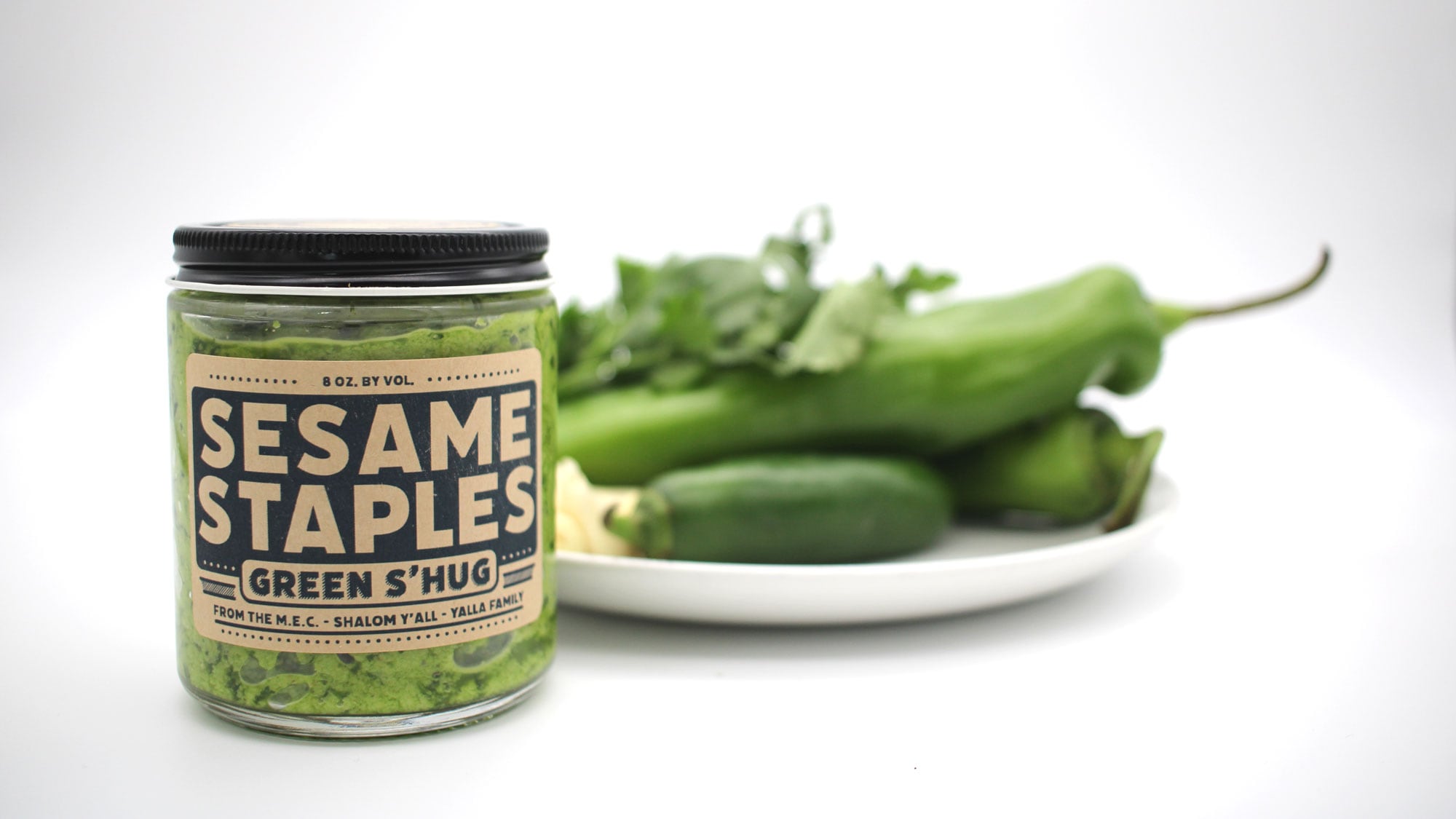 The initial offering of jarred dips and dressings includes a creamy and simple hummus made of only chickpeas, garlic, tahini and lemon; a Green S'hug hot sauce composed of Anaheim, jalapeño and serrano peppers; and a shakshuka base that's ready to pour into the pan with poached eggs.