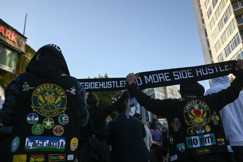 At the Saturday protest, fans had their eyes focused locally, at what could happen with the Thorns and Timbers shared management. Many noted the silence from Thorns owner Merritt Paulson.