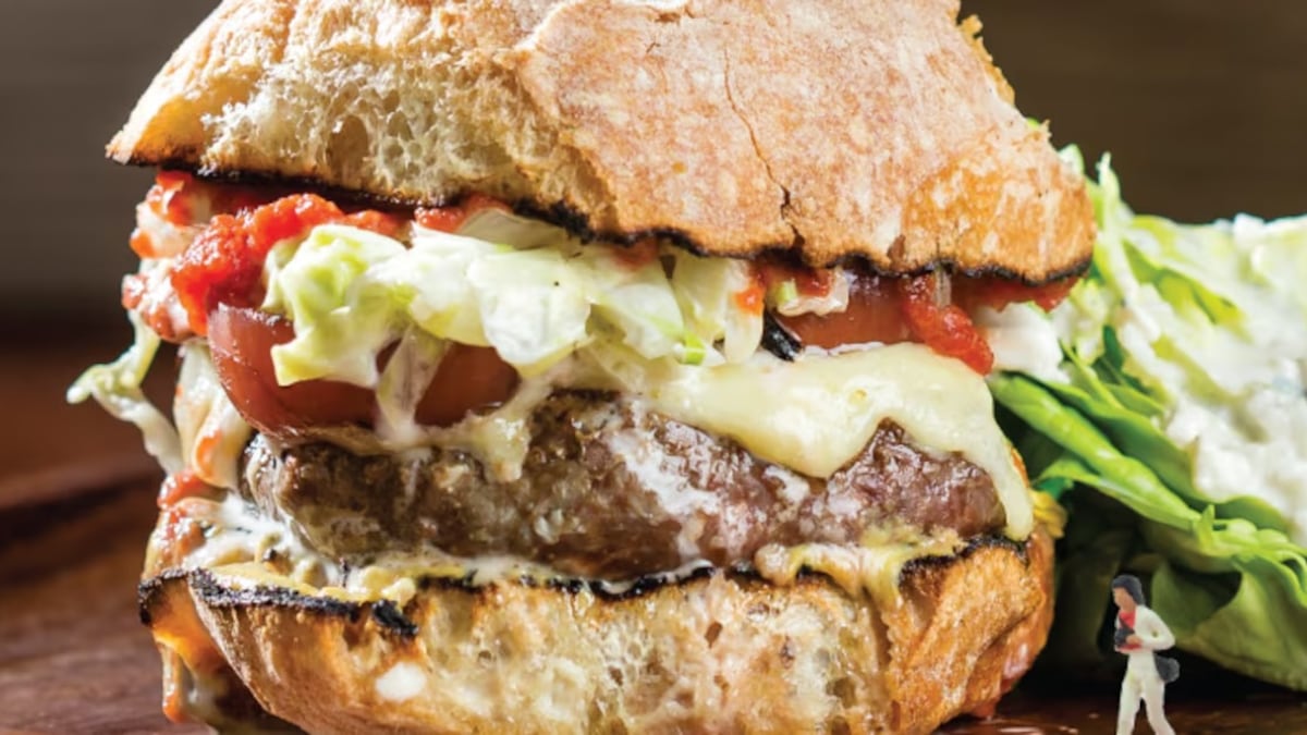 I said, ‘We need a burger, and we’re going to play off fast food.’ I said, ‘We’re going to make the patty square like Wendy’s.’ I think Jack in the Box was pushing ciabatta at the time. We used extra-sharp white cheddar from Tillamook, and I love onions on a burger, which stems from eating at In-N-Out a lot—we grill and pickle them so you get the best of both worlds.