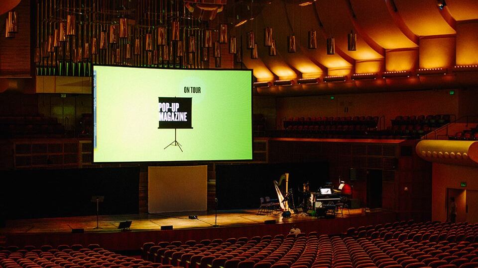 It's partly about time of day. At work, when we scan headlines all day long, we don't have time to lose ourselves in a story. Pop-Up Magazine is always at night. People who buy tickets and bring a few friends to a Pop-Up Magazine show are inviting us into their leisure time. Leisure time is precious, it's hard to convince people to let you into it, but when they do, you get their undivided attention, and it allows you to tell a different kind of story.