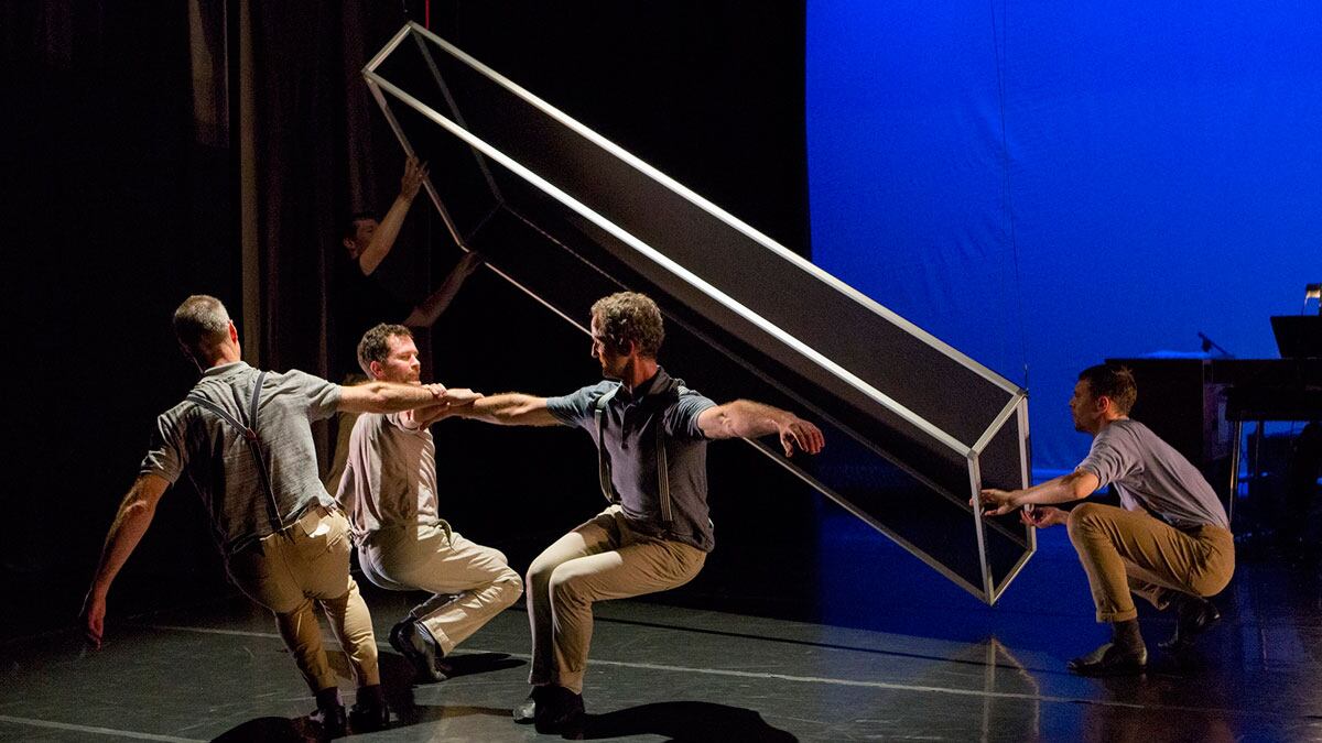 A team of five male dancers—Chase Hamilton, James Healey and Brent Luebbert along with Skinner and Kirk—perform a series of routines with grace and agility, the movements alternating between the fluid and the frenetic.