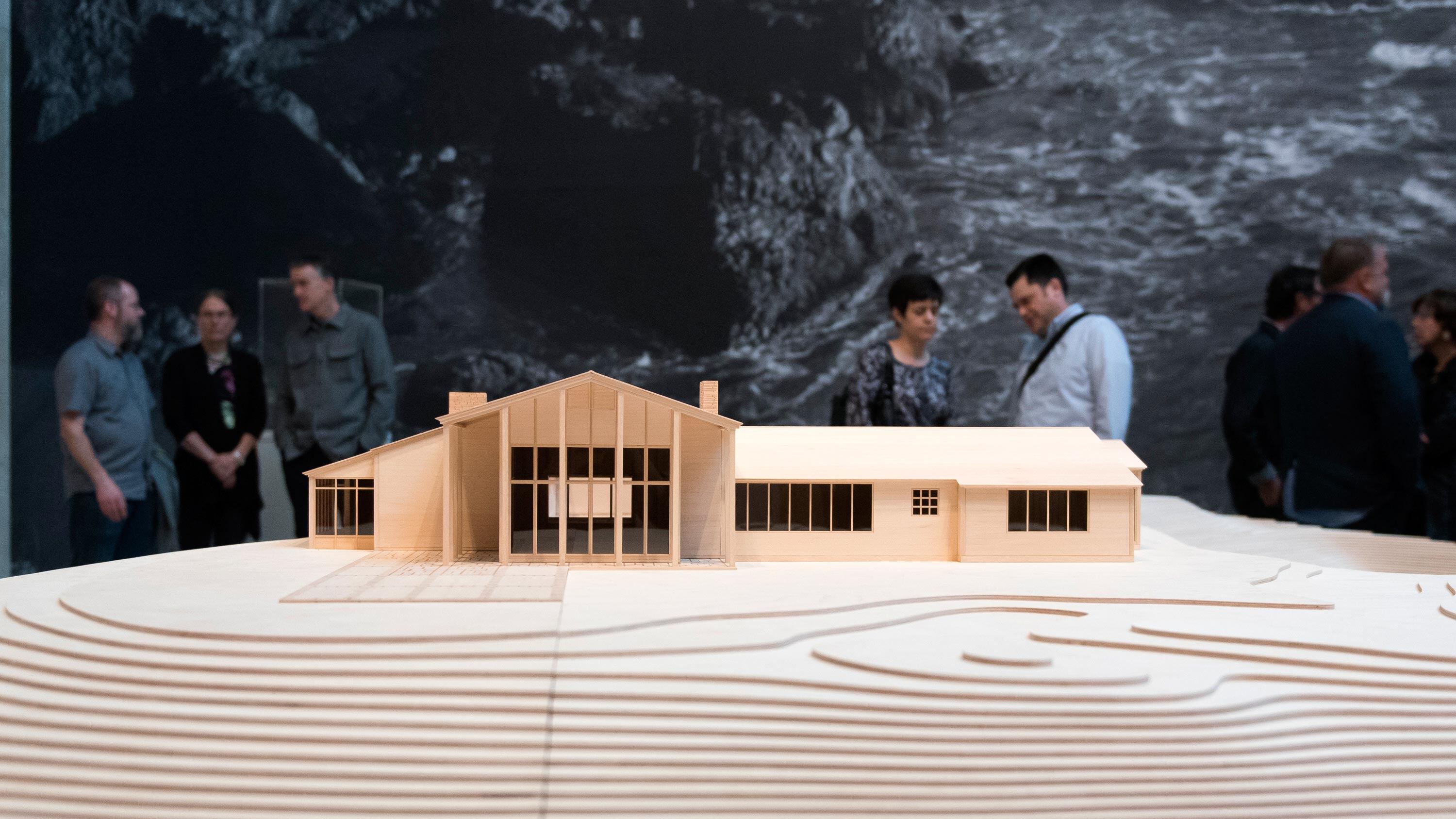 The immense scale of the exhibit is obvious from the main entrance, where there's an enormous floor-to-ceiling photograph of Chapman Point. There's also a large model of the 1937 Aubrey Watzek House, the first of Yeon's designs to actually get built, and one of his most spectacular.