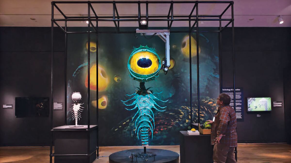The genius of LAIKA's films is as much in their fantastical ambitions as it is in their details, which is something Animating Life constantly reminds you of. In the back center of the exhibit is LAIKA's first automated puppet, a green sea fern with a giant robotic eye. Up close, you can see the texture of foam under the puppet's green paint. Its wires and mechanical spine are exposed along its back. There's a control panel where you can move the puppet's head by rotating a bowling ball—due to an almost obsessive need to empathize with their work, the fern monster's creators wanted to have a physical sense of the puppet's giant eye as they controlled it, and a bowling ball was the closest approximation.