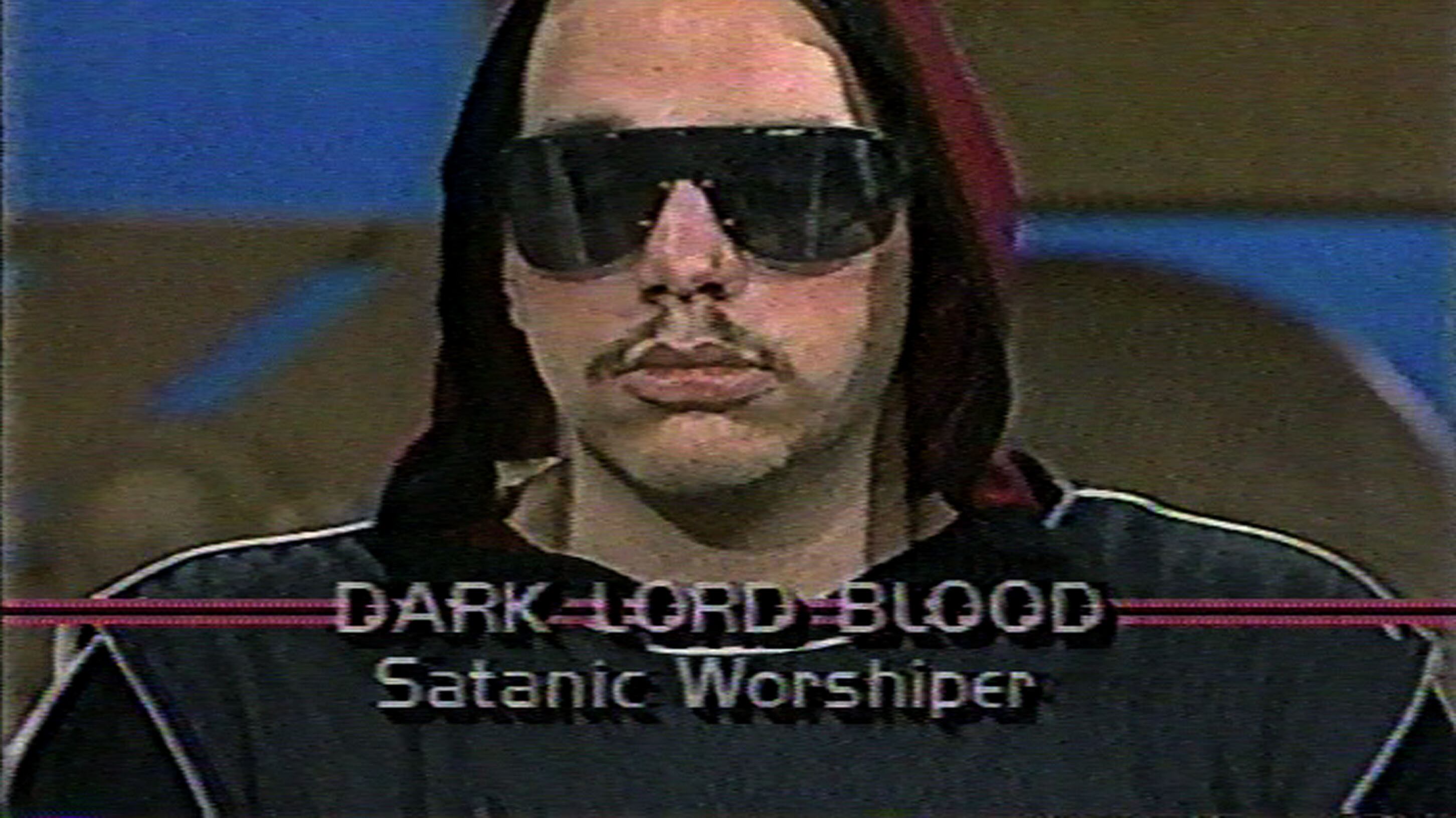 "There was a local talk show called The Best Talk in Town, and this episode was on Satanism," says Prueher. "They had a Satanist expert on, and a seventh-generation Satanist who went by the name Dark Lord Blood." At one point, the interviewer asks Dark Lord Blood about the practical uses of a ritual knife. His only response is a threatening growl.