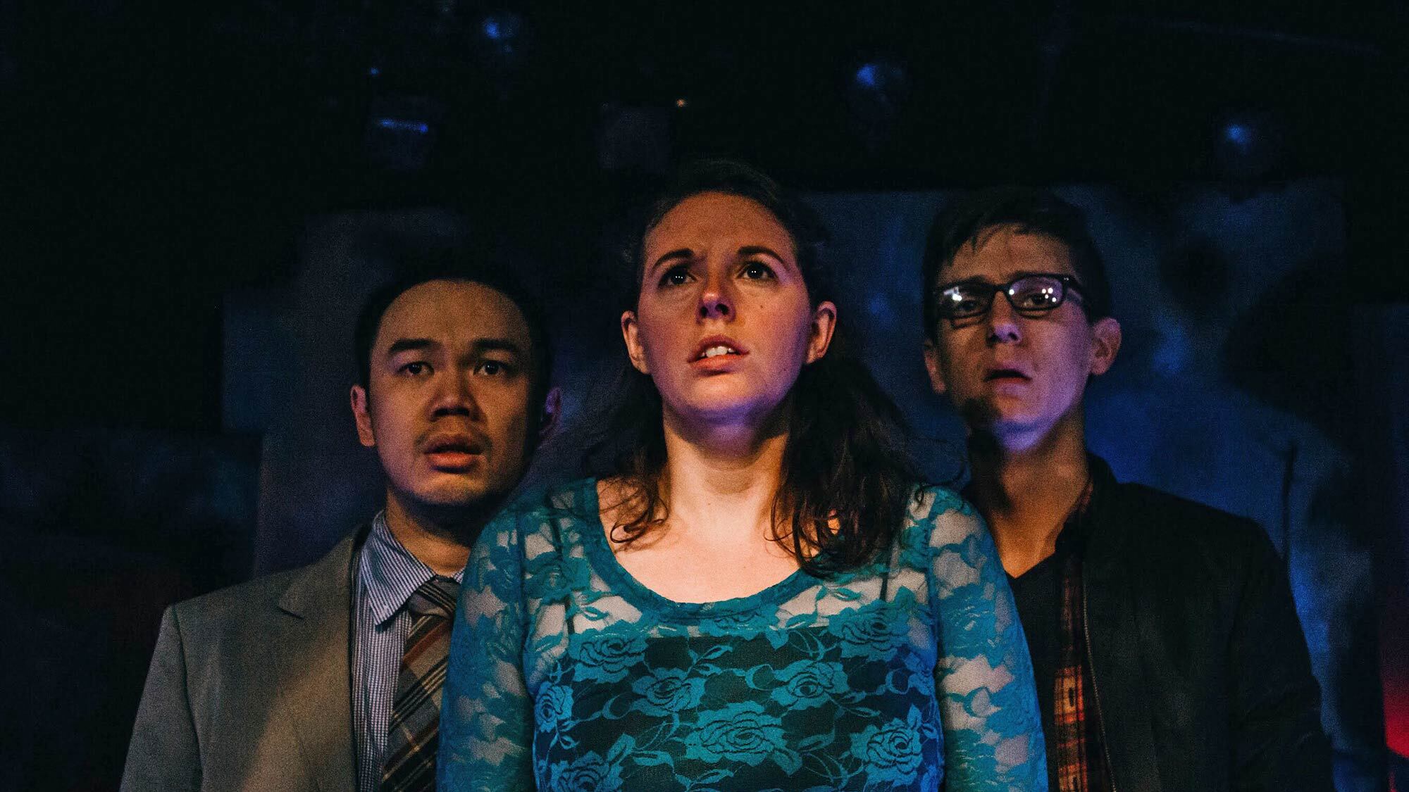 This twist in the turn of events is tense and unsettling. Whereas the other parts of the play are presented interview-style—the characters give their impressions before or after everything happened—"Middle of the Night" exists in present time. The characters explore their surroundings, unsure of what will happen, terrified as we in the audience are. One interesting thing about this sequence is that, by my estimation, it lasts 20 to 30 minutes, but only about one-quarter of it contains any dialogue. Plays are, by nature, verbose, so this frightened silence and the characters' shallow breaths stand out, emphasizing the desperate mood. Credit also goes to Kelly Terry for a lighting design full of ominous silhouettes and skulking shadows, as well as to sound designer Chris Beatty, who knows the right time to deploy a squeak or a screech to make your hair stand on end.