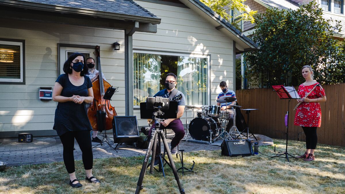 So Politzer started hosting and livestreaming weekly jazz performances outside her bungalow home, a series called Driveway Jazz. Local groups and musicians perform in front of a small, socially distanced audience. (Politzer doesn't post her address online but sometimes gives it out if asked via direct messaging on social media.) The sets are also livestreamed on Driveway Jazz's Facebook page so anyone can enjoy the grooves and sambas.