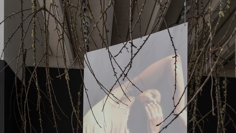 Adam McKinney: There's no one way to experience Shelter in Place. My goal is that everyone will connect to some element, and I offer these multiple avenues of entry for viewers so that they connect with perhaps the imagery, perhaps the music, perhaps the branches that wind and weave and coil throughout the space coming to a climax in the corner where the Glorious Clouds film plays, and these seemingly disparate sides come together as one full identity.
