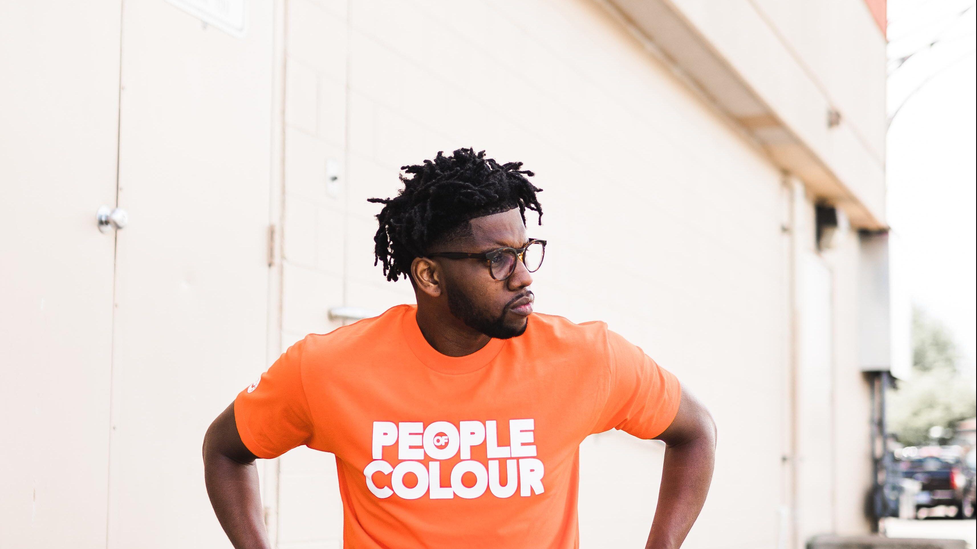 He still wants to be a gardener, and he still has all his tools. For now, though, he has a message to spread—lots of them, in fact—on People of Colour gear.