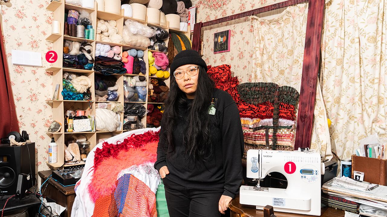 When Vo started their MFA at the Pacific Northwest College of Art two years ago, they thought they'd study illustration. Then they found a sewing machine on the side of a road. As a kid, Vo worked in a sweatshop with their parents, but they hadn't sat at a sewing machine since. "Me and my parents were part of a wider network of Vietnamese refugees who were employed illegally to make things in Australia for North American fashion companies," says Vo, who is Vietnamese. Not long after they took home the abandoned machine, Vo shifted their focus from illustration to textiles. "I do feel so comfortable when I'm at the machine making stuff, and it's because I did it for hours as a kid," says Vo. "But this time, I'm doing it for me and not for another company."