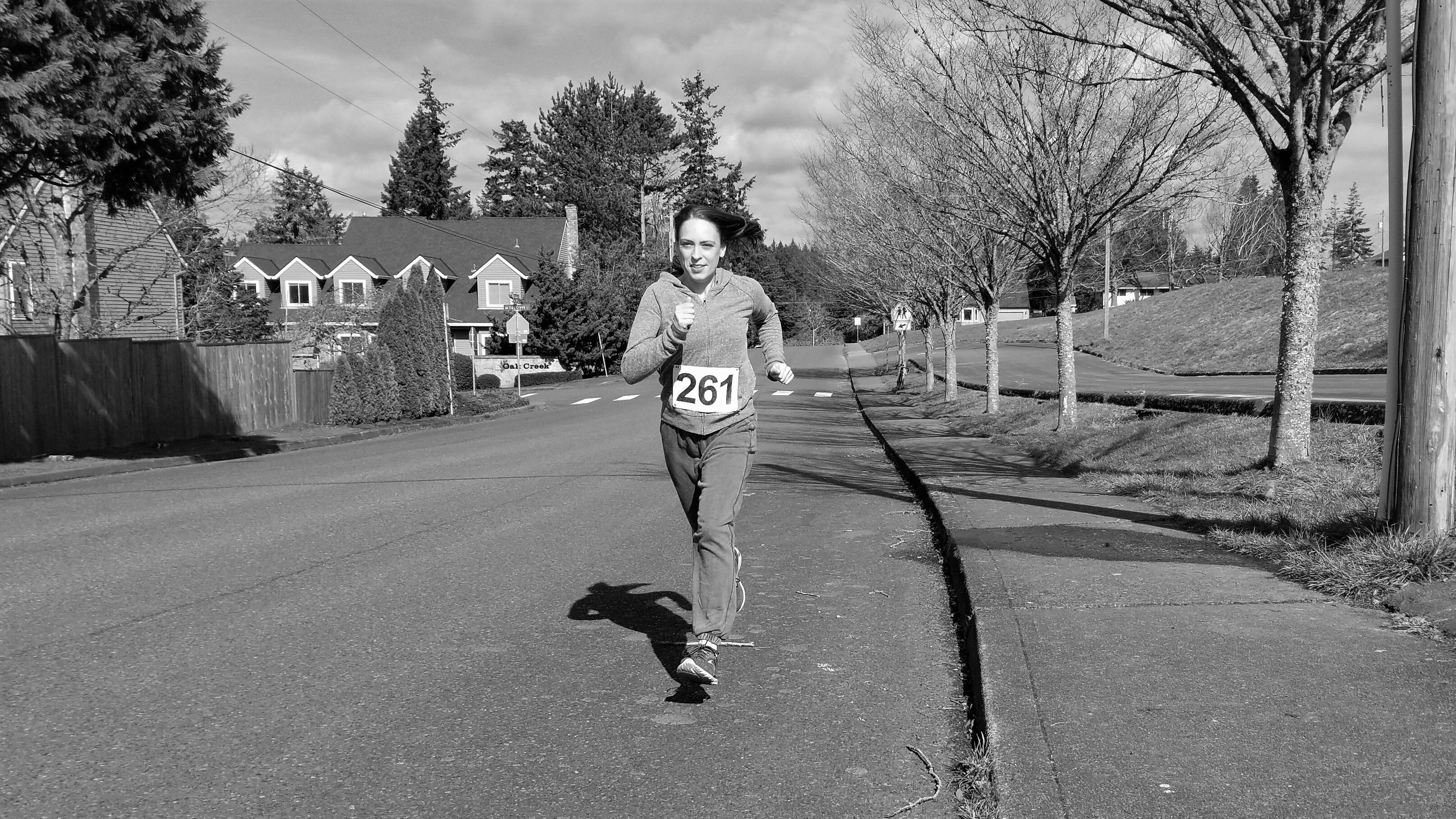 I wrote an opera for myself to perform for the festival about Kathrine Switzer's running of the Boston Marathon in 1967 as the first registered woman competitor, and we decided the best thing for me to do was to actually go outside and run. I laid down the vocal track first, and so I'm lip-syncing in the film. My fiancé had a Bluetooth speaker as he was running beside me and filming. We were quite the pair on the streets of downtown Tigard filming a couple days ago.