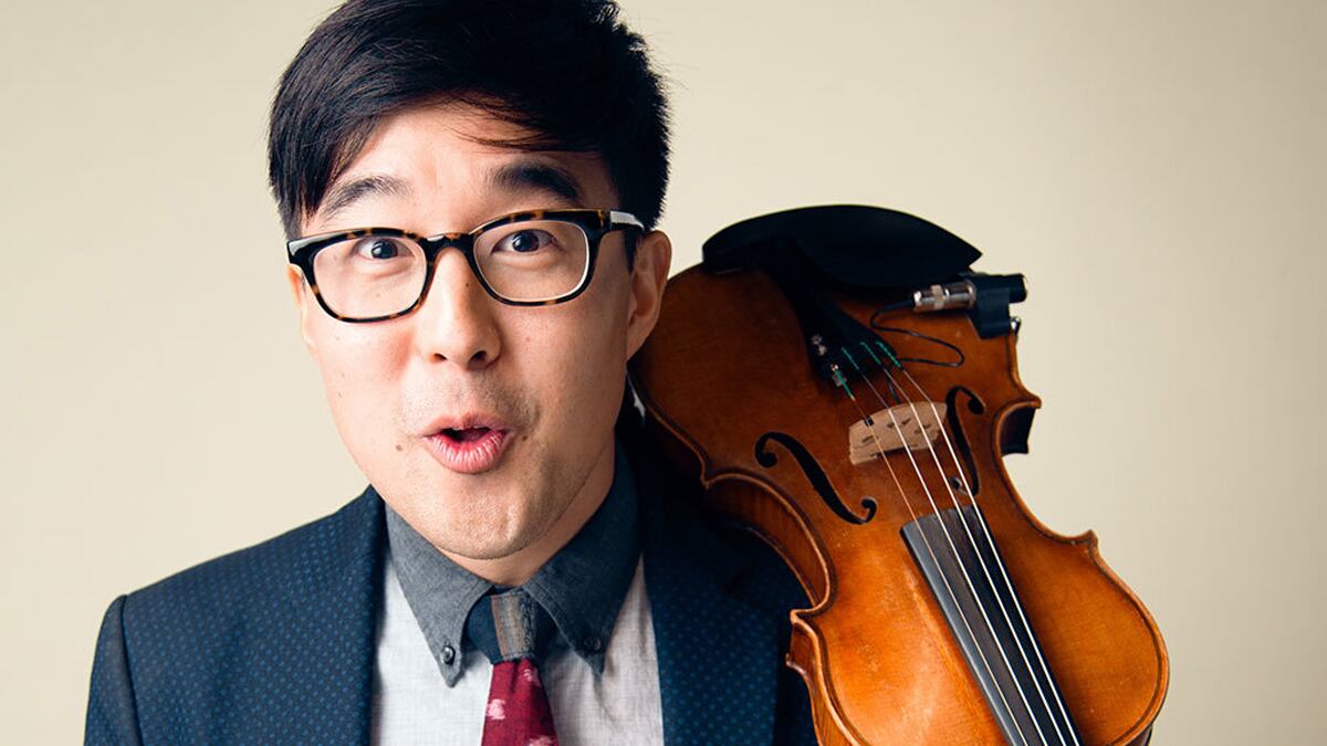 During a virtual concert presented by Portland Center Stage, indie string pop violinist Joe Kye takes a break from his zany, zesty sounds to talk about public shaming. “I think that we should work toward some kind of compassionate system, but I don’t know how,” he says. “That’s up to you, Google. Make it happen. Chop, chop.”