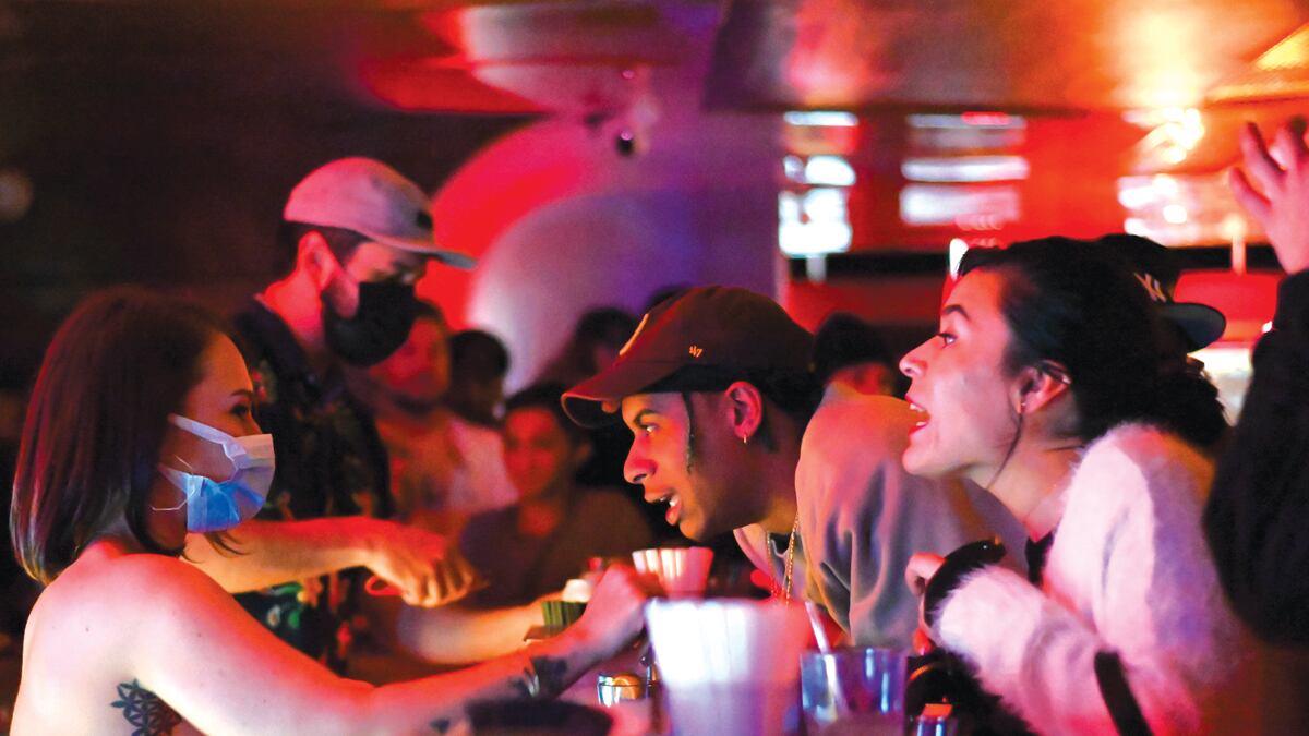 Drink-pouring bartenders were masked, but the clientele, shouting orders over the music with pre-pandemic abandon, was not.