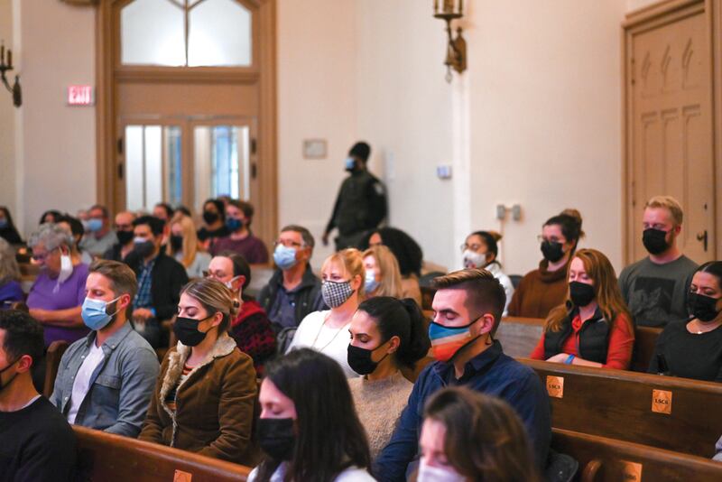 One such woman, who went by Cookie, led the packed, masked hall in a guided meditation. “Plant your feet on the ground,” she said, and the church echoed with dull thuds. “Take a deep breath.” There was an audible inhale, some sucking in their masks.
