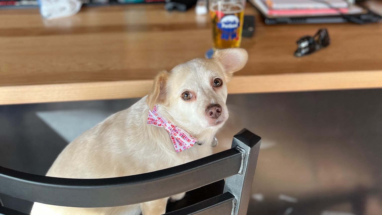 Nicole Harris, general manager of the dog-friendly St. Johns pub The Park, tells WW that Oregon Humane Society saved Gatsby and his litter from being euthanized in an overcrowded California shelter before he was born. Harris adopted Gatsby after learning his story as an OHS volunteer. He was shy at first, but Harris said she’s exposed Gatsby to the wider world. “From day one I’ve taken him everywhere with me: mountain biking, hiking, snowboarding, paddle boarding, grocery stores and bars,” Harris says. “Through that he developed the most amazing personality and best ‘good boy’ behavior!”