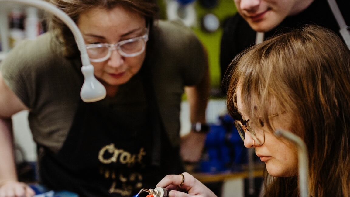 She started MAC’s metalsmithing and jewelry program in Multnomah Village back in 2001 with her own tools and curriculum. Now, it employs Shiga plus six other instructors. The classes are affordable and usually full, often with a waiting list. Shiga has showcased her art at MAC’s gallery. She appreciates the center’s specialty equipment and ventilation, and meets at the center monthly with the other members of the Creative Metal Arts Guild.